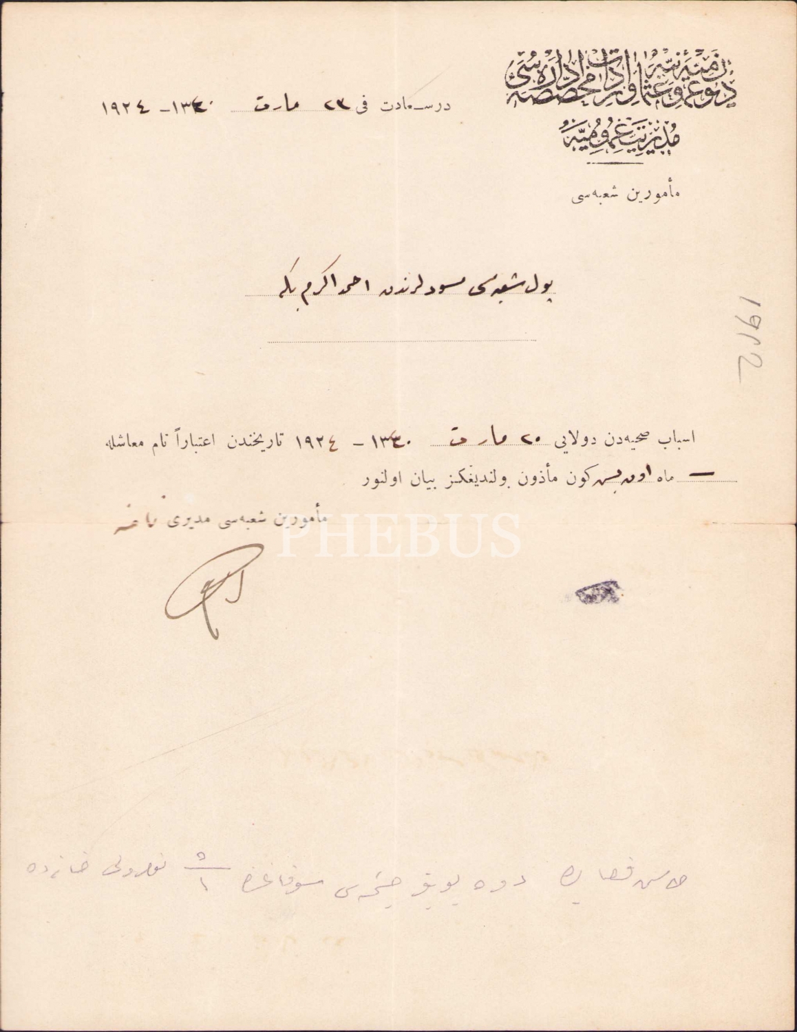 Osmanlıca işyeri izin belgesi, İstanbul 1924, 17x22 cm, hafif yıpranmış haliyle