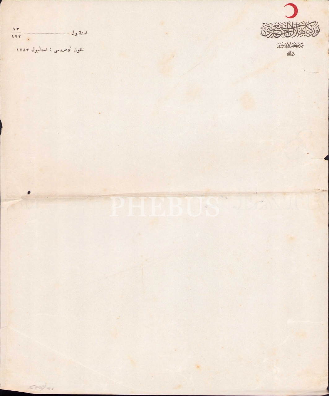 Osmanlıca Türkiye Hilal-i Ahmer Cemiyeti antetli boş kâğıt, 22x27 cm, lekeli ve hafif yıpranmış haliyle
