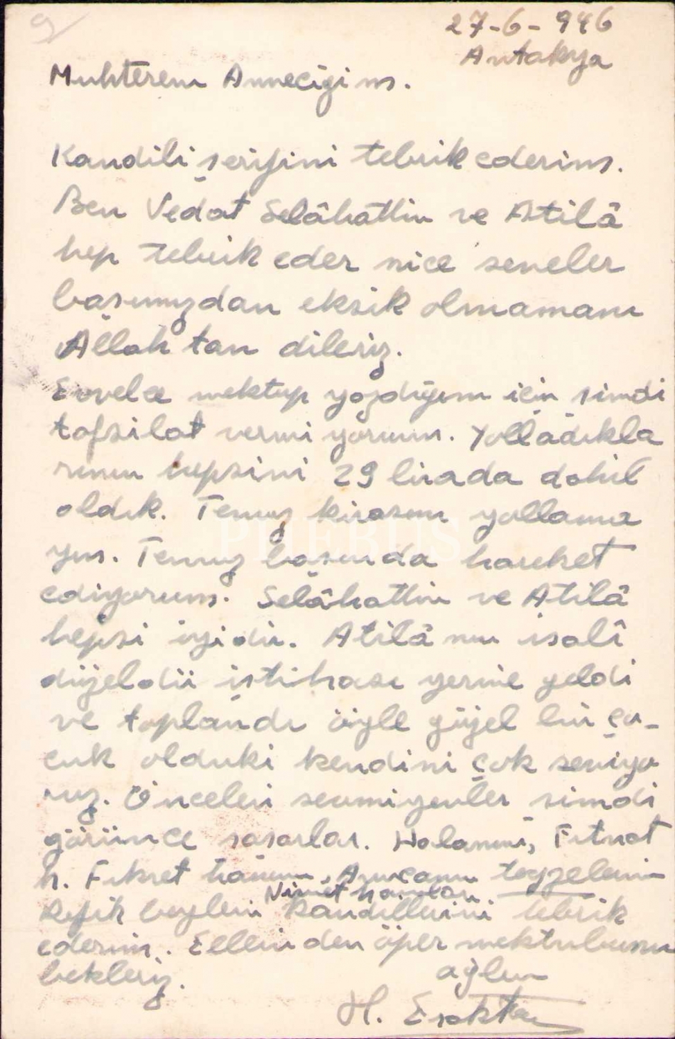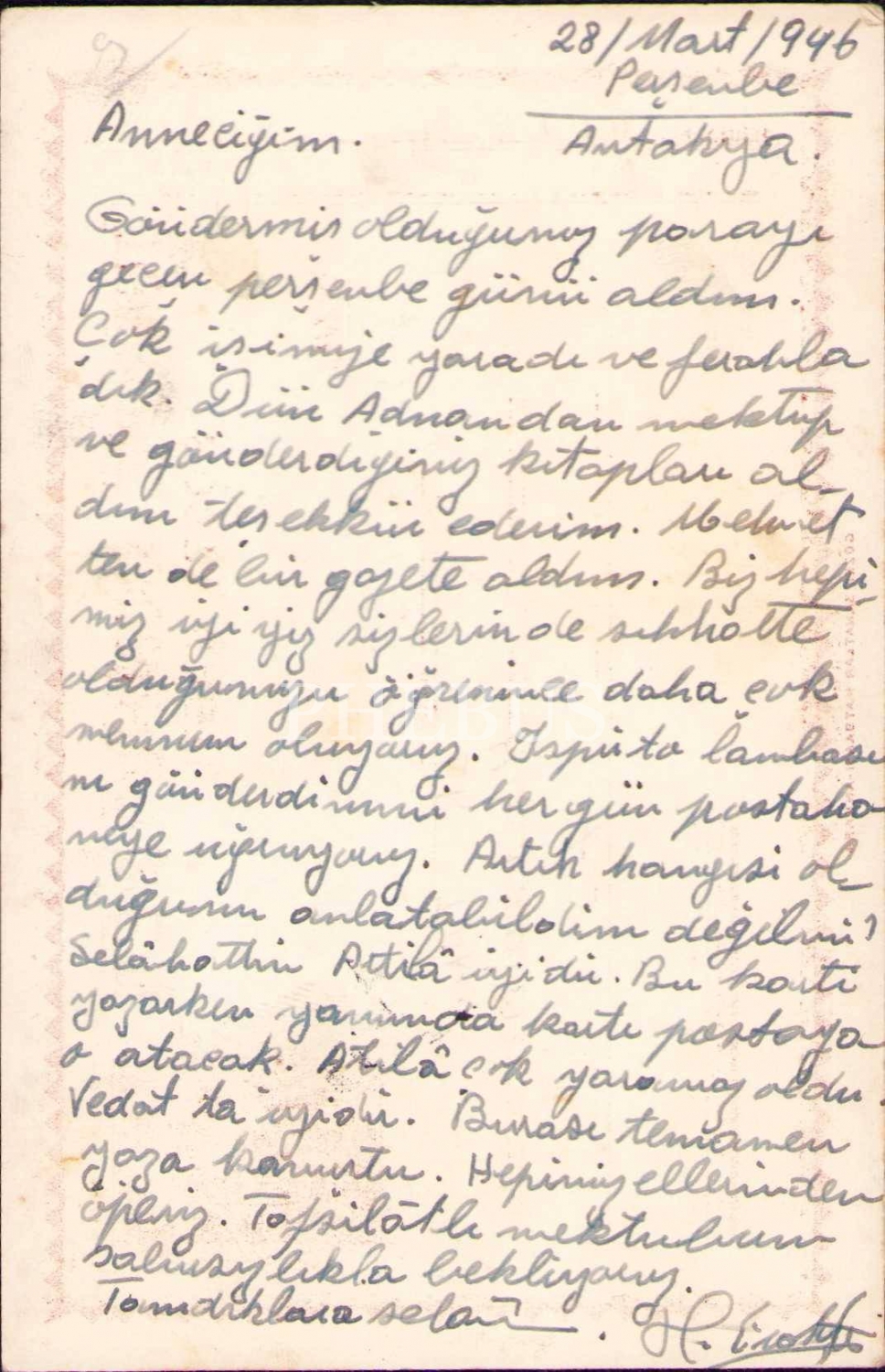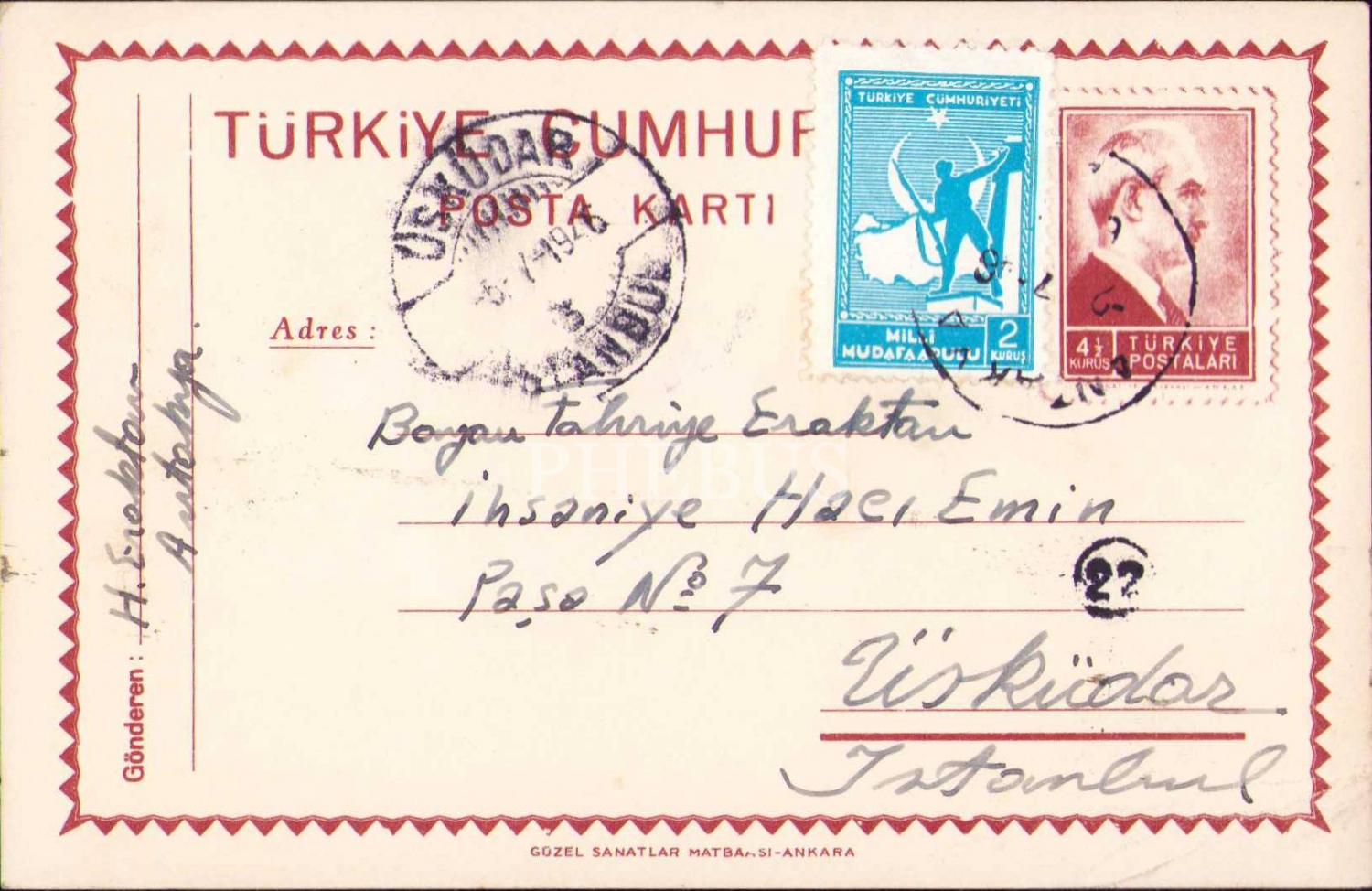 Fahriye Eraktan alıcılı ve 1946 tarihli dört adet mektup kartı, Antakya-İstanbul, postadan geçmiş, ikisi hafif yıpranmış haliyle