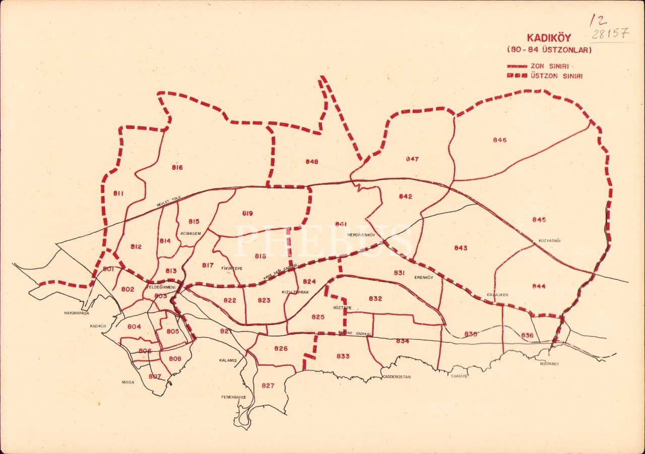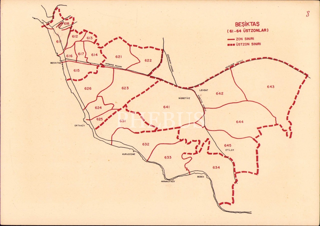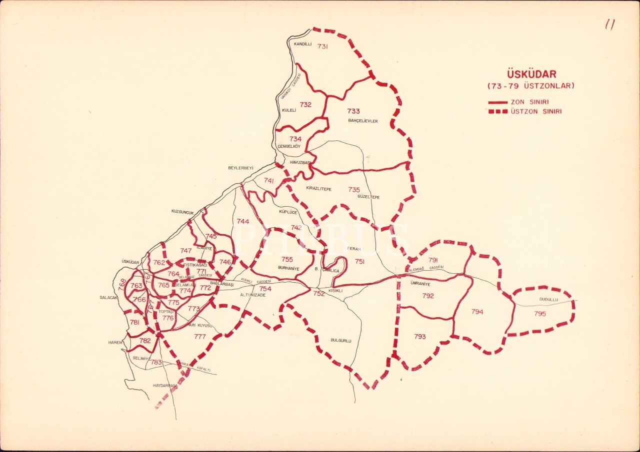 İstanbul ilçeleri nazım plan haritaları ve zarfı, 13 sayfa, 21x30 cm, zarfı hafif yıpranmış haliyle