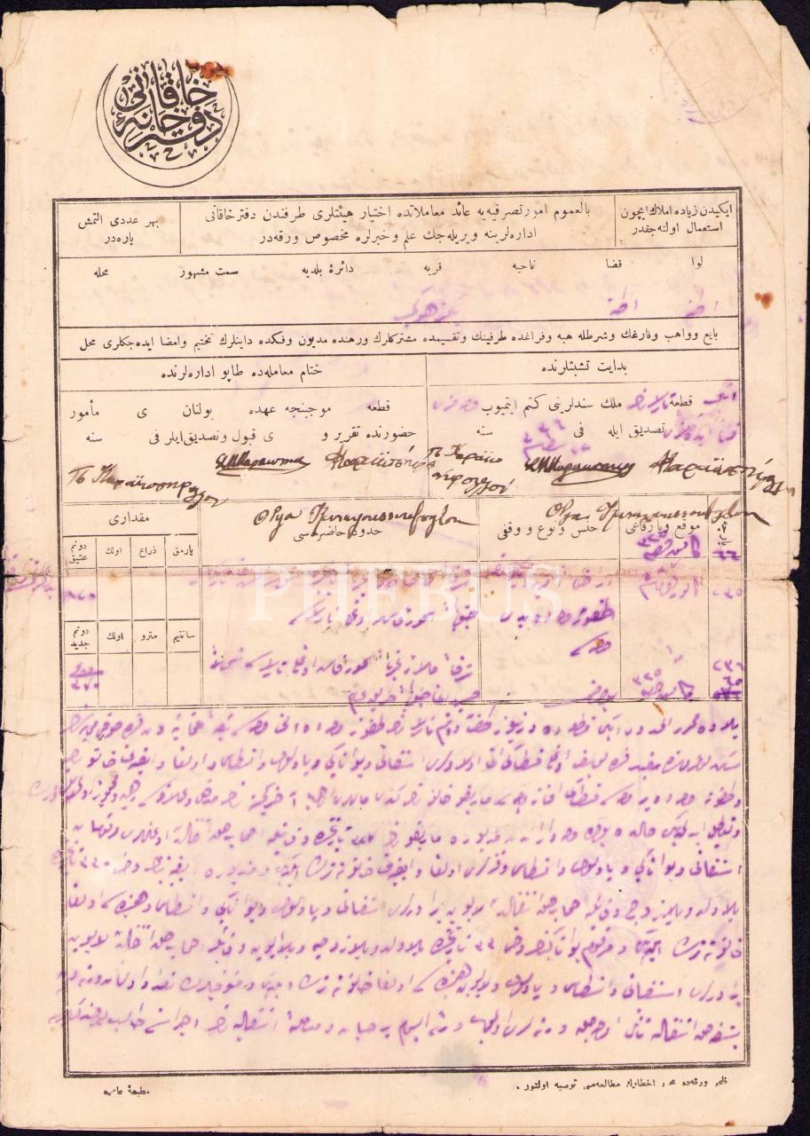 Osmanlıca Defterhane-i Hakani antetli tarla tapusu, Adana 1336, 20x29 cm, su almış ve epey yıpranmış haliyle