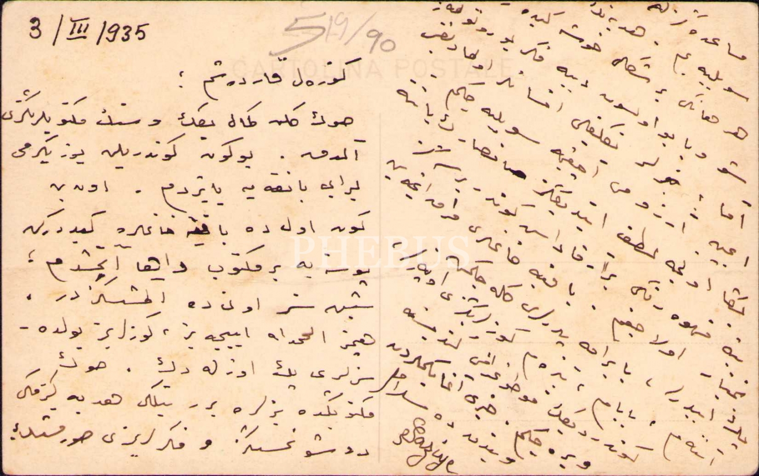 Rumeli Hisarı-Boğaziçi/İstanbul, arkasında 1935 tarihli Osmanlıca mektup mevcut, köşeleri hafif yıpranmış haliyle