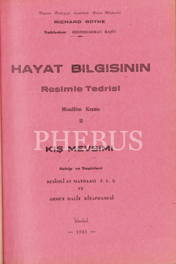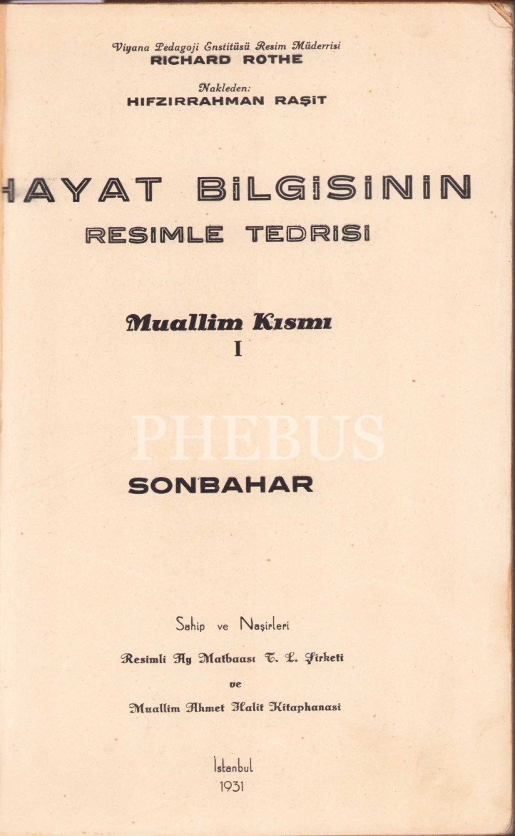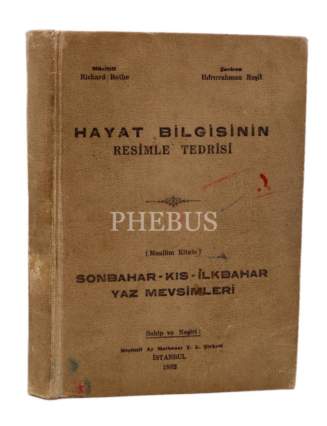 Hayat Bilgisinin Resimle Tedrisi (Muallim Nüshası)-4 Kısım: Sonbahar, Kış, İlkbahar, Yaz, Richard Rothe, çev. Hıfzırrahman Raşit, Resimli Ay Matbaası, İstanbul 1931-32, 16x24 cm, sırtı ayrık ve cildi yorgun haliyle