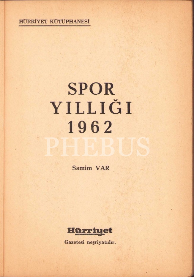 1962 Spor Yıllığı, Samim Var, Hürriyet Gaz. Yayınları, İstanbul, 127 s., 14x18 cm, kapağı yıpranmış haliyle