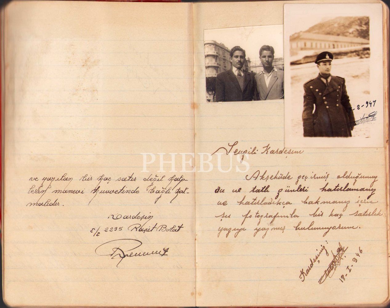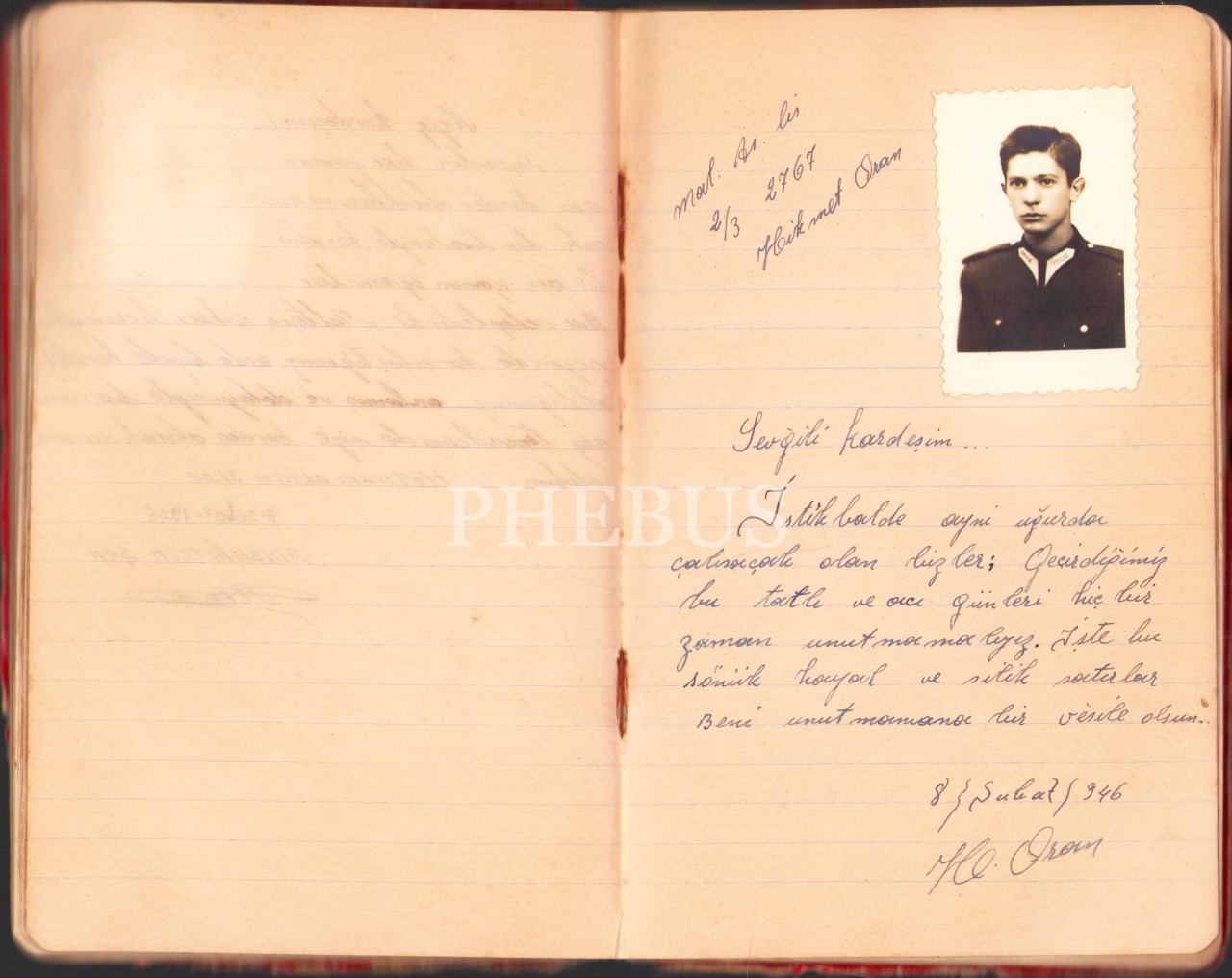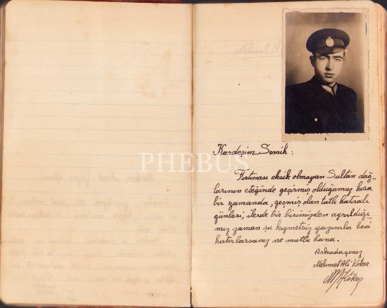 Akşehir Maltepe Askerî Lisesi'nde öğrenim gören Semih Yağız isimli bir öğrenciye ait hatıra defteri, 1946 tarihli, 13x20 cm, cildi epey yıpranmış haliyle