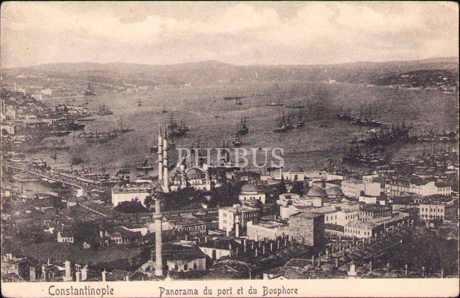 Eminönü ve İstanbul Boğazı genel görünümü, ed. Au Bon Marche-Pera, köşeleri hafif yıpranmış haliyle