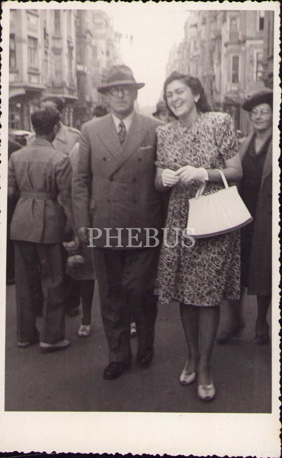 İstiklal Caddesi'nde şık giyimli hanımefendi ve beyefendinin hatıra fotoğrafı