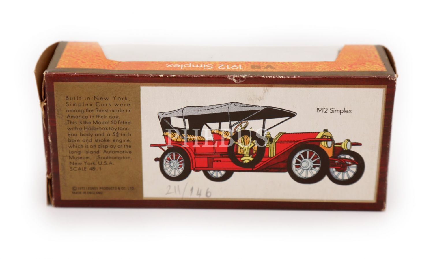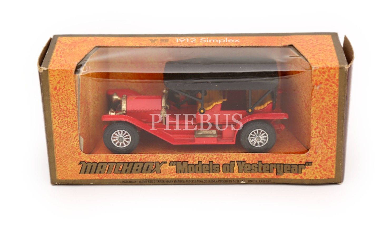 1973 İngiltere üretimi orijinal kutusunda Matchbox oyuncak araba, 1912 Simplex model, 4x4x9 cm