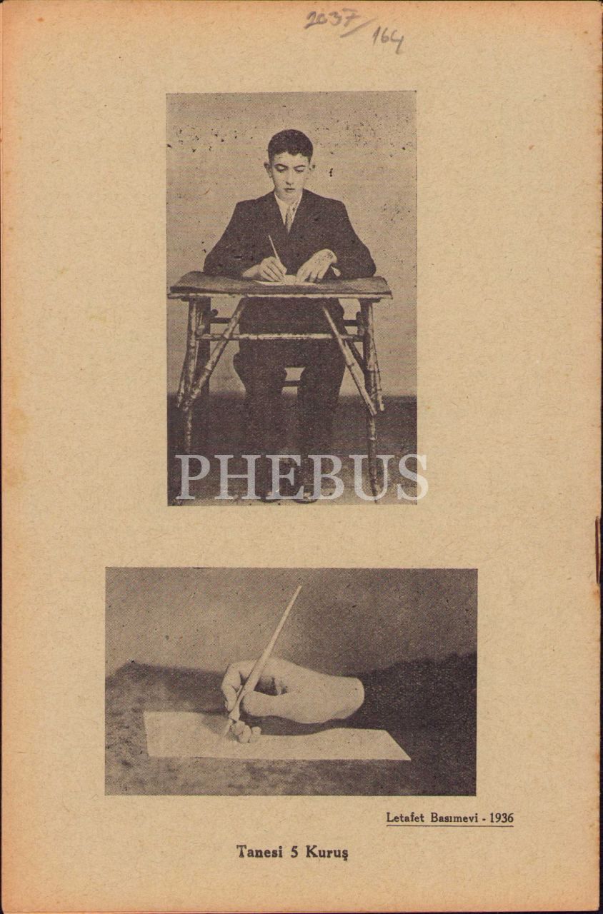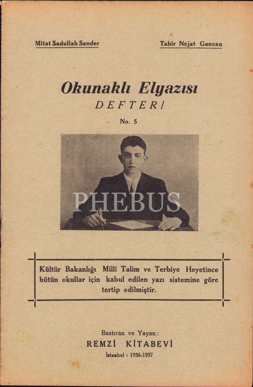Okunaklı Elyazısı Defteri, Mitat Sadullah Sander-Tahir Nejat Gencan, Remzi Kitabevi, İstanbul 1936-37, 16 s., 14x22 cm, yer yer lekelenmiş haliyle