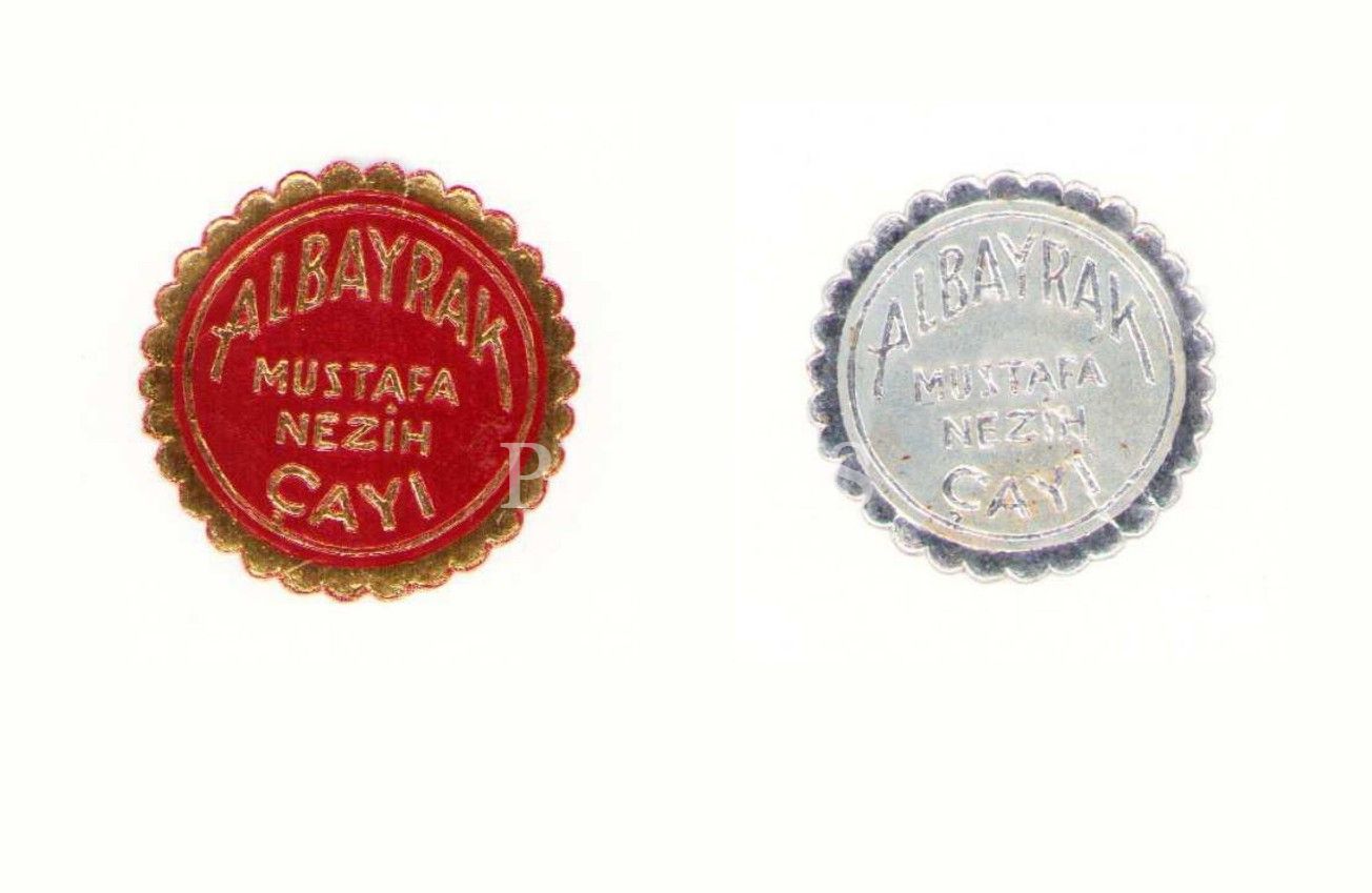 Albayrak Mustafa Nezih Çayı markasına ait 2 adet gofre etiket, 3x3 cm