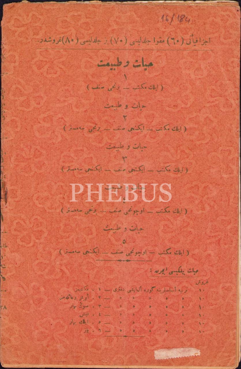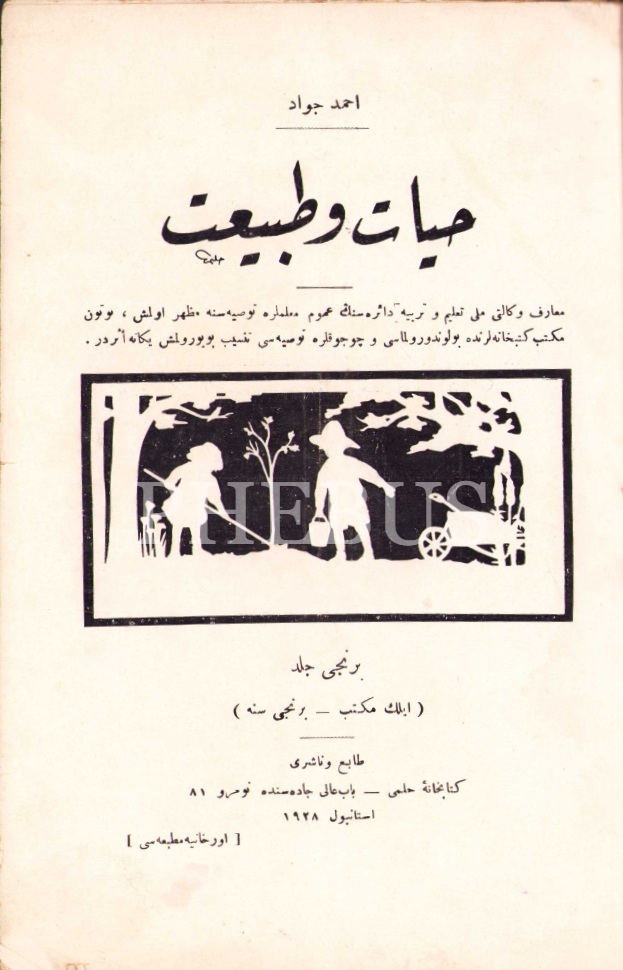 Osmanlıca Hayat ve Tabiat, Ahmed Cevad, Orhaniye Matbaası, İstanbul 1928, 32 s., 15x23 cm, kapağı yıpranmış haliyle