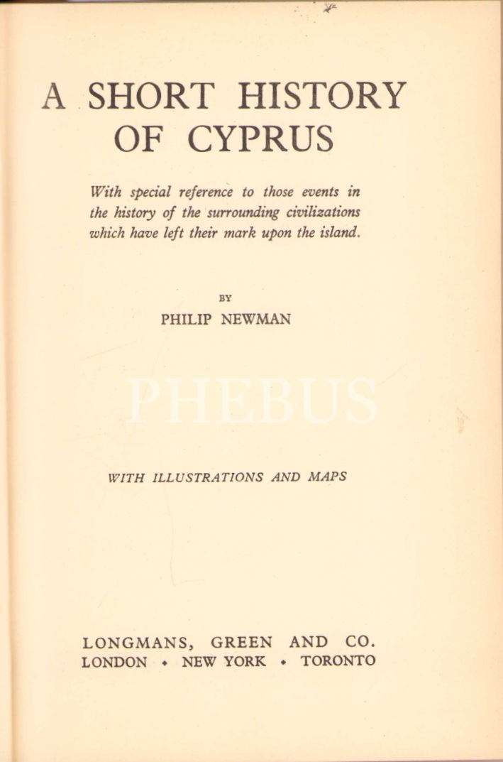 İngilizce A Short History of Cyprus, Philip Newman, Longmans, Büyük Britanya 1953, 235 s., 13x19 cm, şömizi yıpranmış haliyle