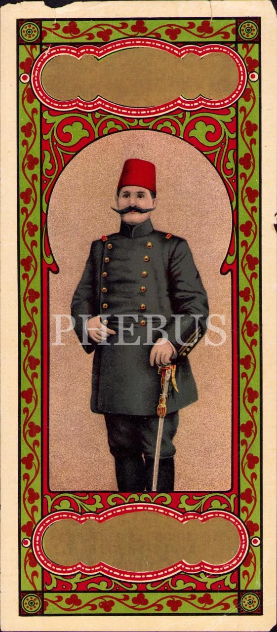 Resneli Niyazi görselli fes etiketi, 11x25 cm, kenarları yıpranmış haliyle