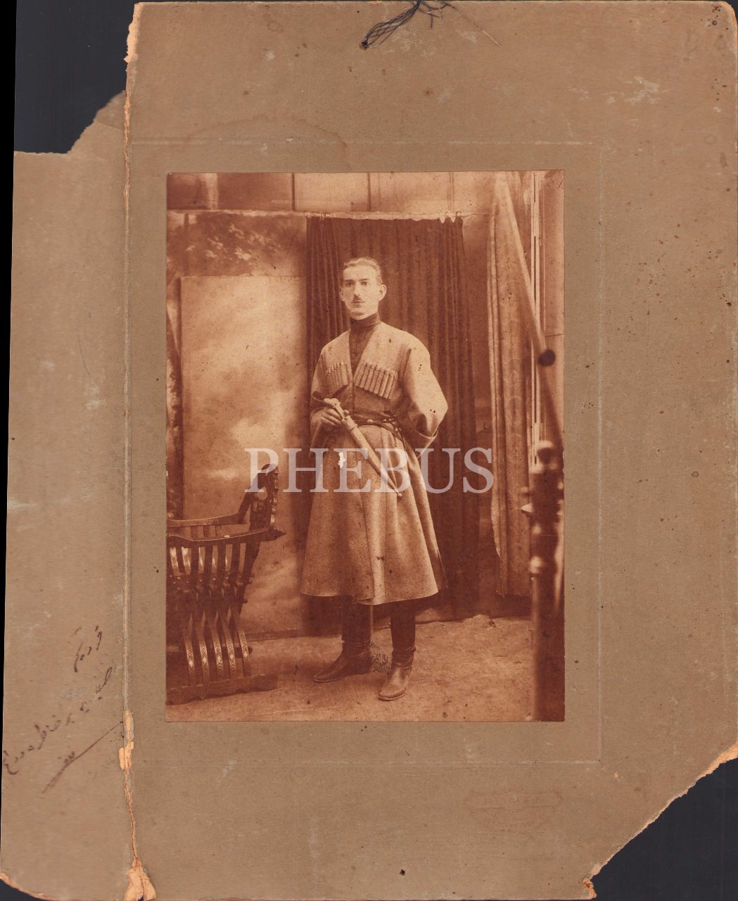 Kafkas kıyafetli beyefendi, Osmanlıca ithaflı, foto: 16x21 cm, fotoğrafta soyuk mevcut ve paspartusu epey yıpranmış haliyle