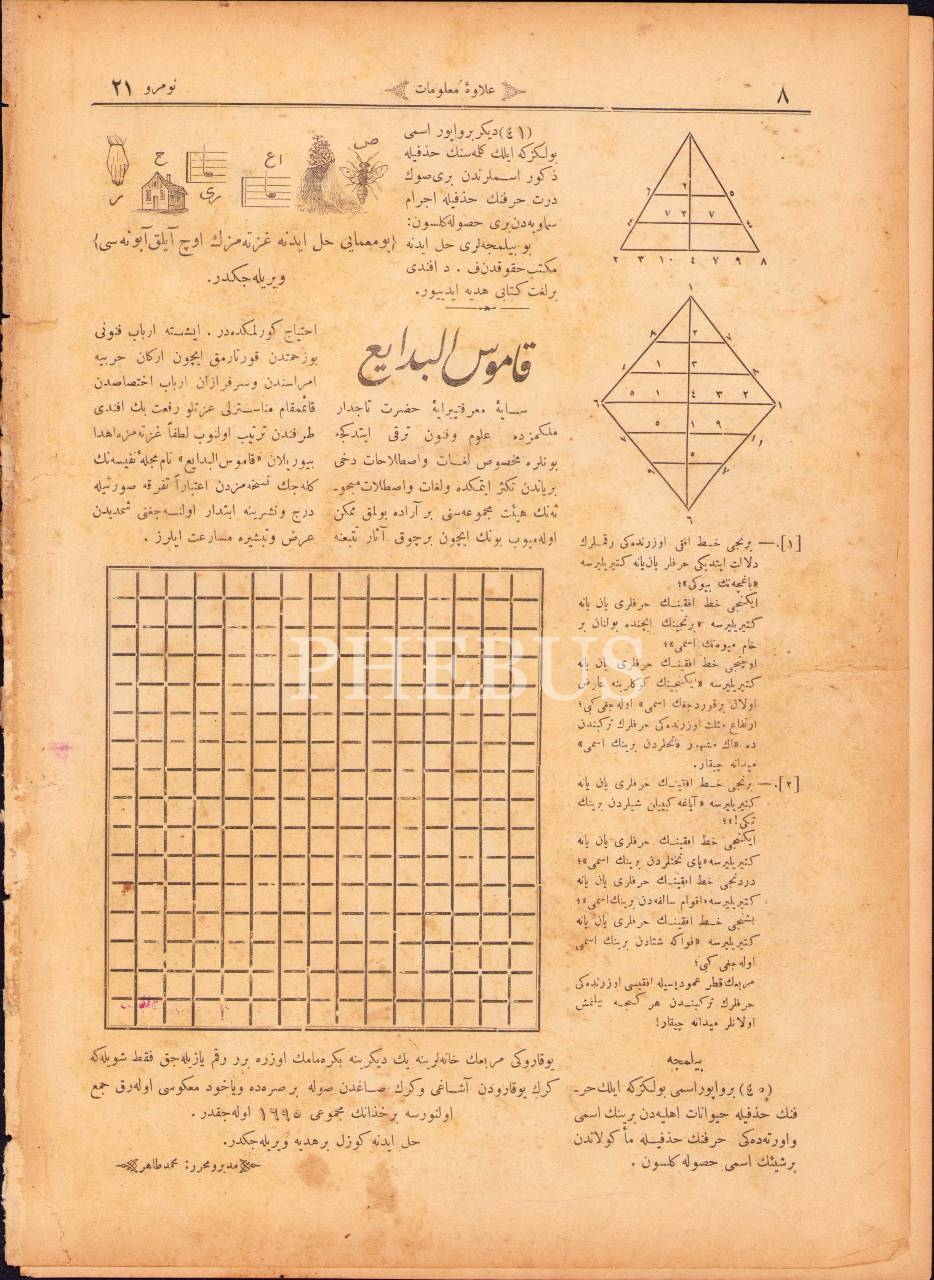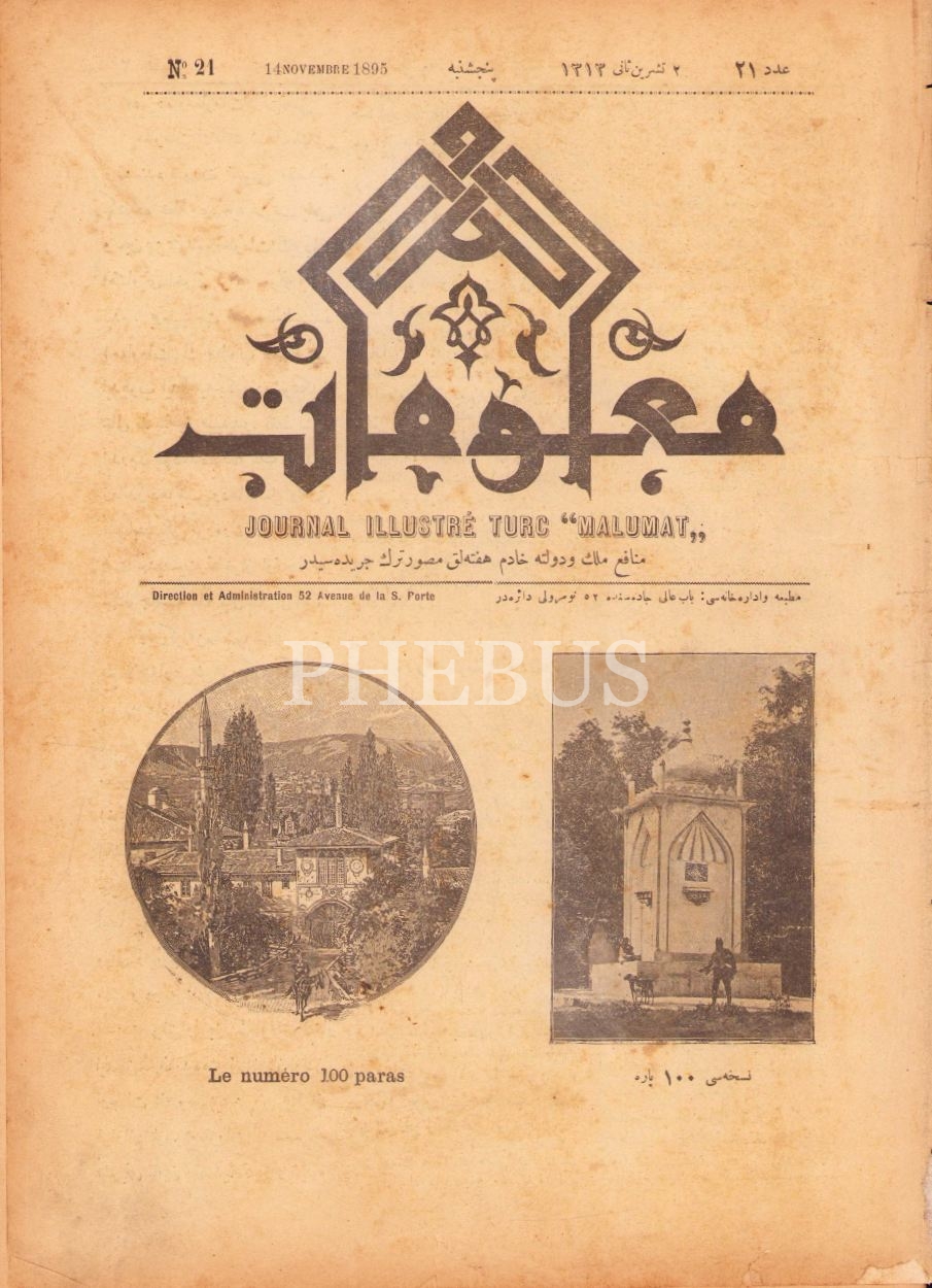 Osmanlıca Malumat dergisi 21-23 ve 29. sayıların Arapça Kısmı, Teşrinisani 1311 ve Şaban 1313, 24x33 cm, yıpranmış haliyle