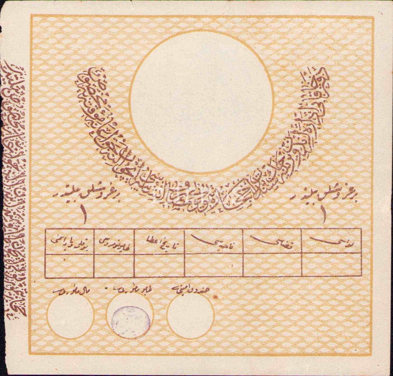 Hicaz Demiryolu inşası için [boş] yardım makbuzu, Osmanlıca Hicaz Demiryolu İdare-i Maliyesi Nezareti soğuk damgalı, 14x14 cm