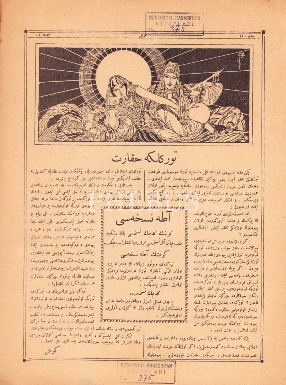 Orhan Seyfi Orhon tarafından çıkarılmış olup, hiçbir edebî ekole bağlı olmadan sanat ve edebiyat dünyasındaki durgunluğu gidermek için her nesilden ve her çeşit fikir sahibine sayfalarını açacağı iddiasıyla yayın hayatına başlamıştır. Derginin yazar-şair kadrosunda Yusuf Ziya Ortaç, Nazım Hikmet, Şükufe Nihal, Reşat Nuri Güntekin, Mehmed Rauf vd. yer almıştır. Derginin bu sayısında Sabahaddin Ali'ye ait "Çakır" adlı şiir ile Selim Sırrı'ya ait "Moliere Nasıl Bir Adamdı?" başlıklı yazı mevcuttur.