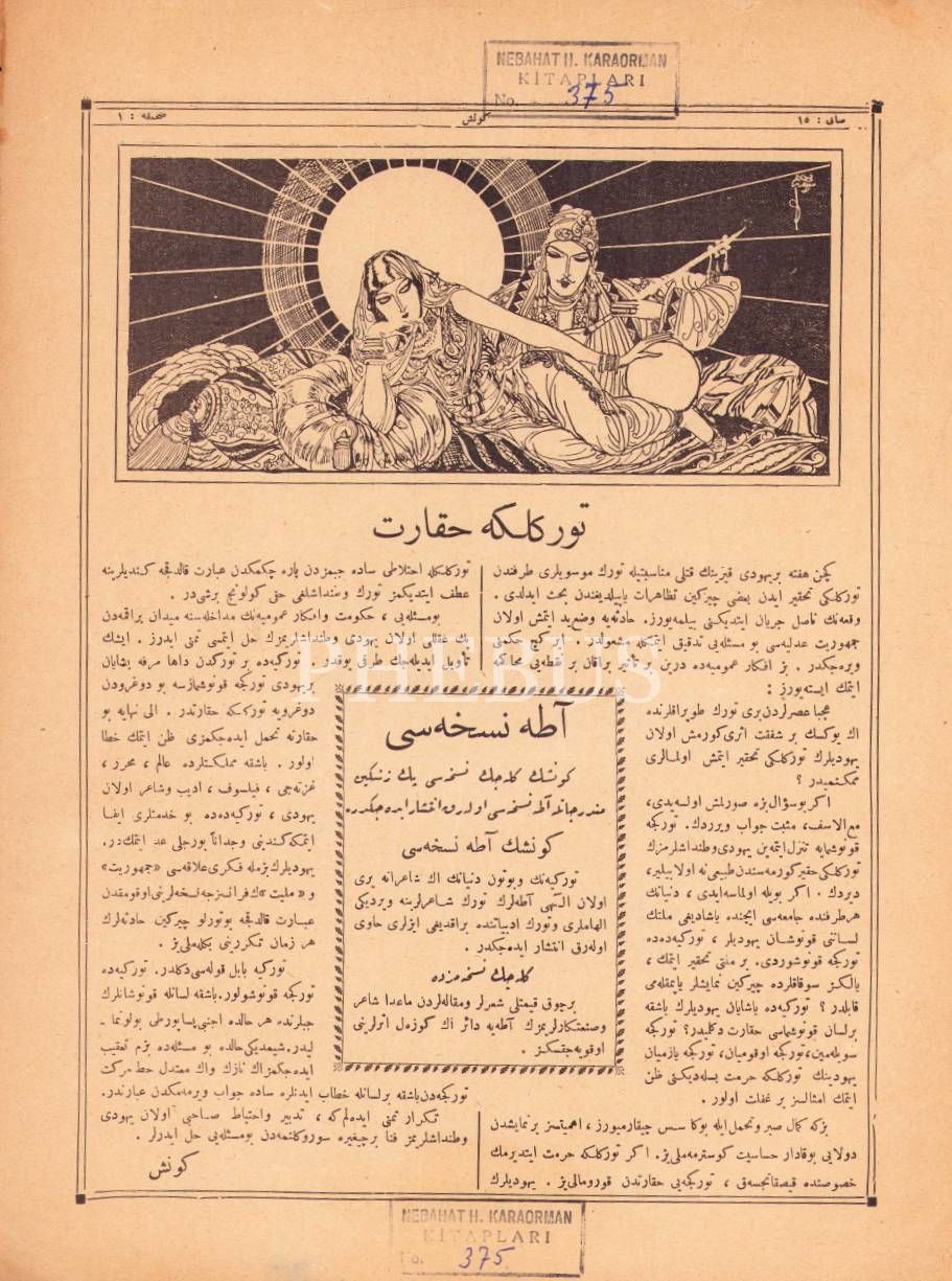Osmanlıca Güneş dergisi 15. sayı, 23x31 cm, kenarları yıpranmış haliyle