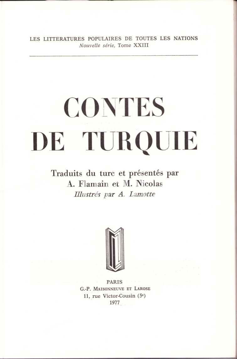 Fransızca Contes De Turquie, A. Flamain-M. Nicolas, Paris 1977, 137 s., 16x24 cm