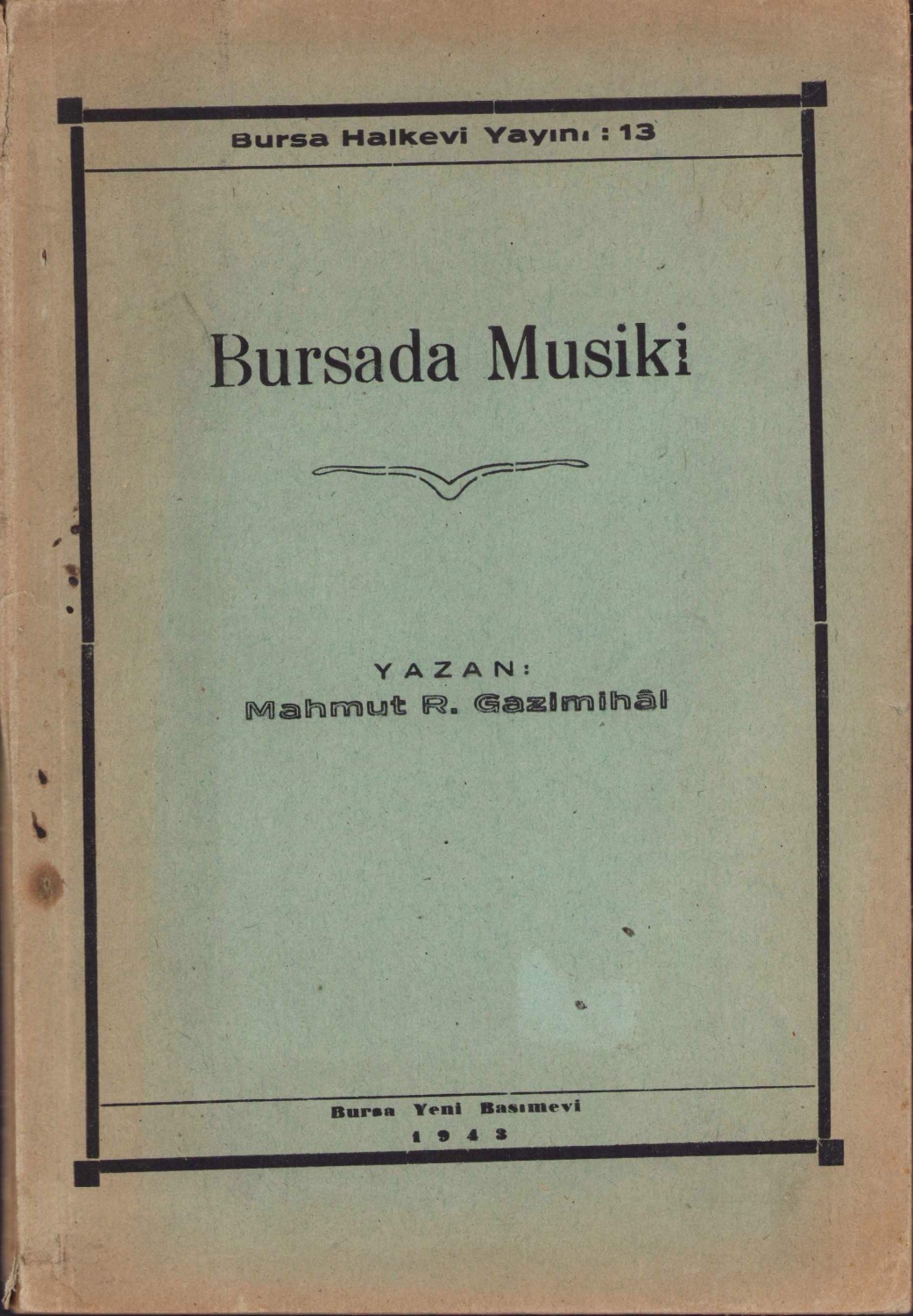 Bursada Musiki, Mahmut R. Gazimihal, Bursa, 1943, bol görselli, 109 sayfa, 16x23cm