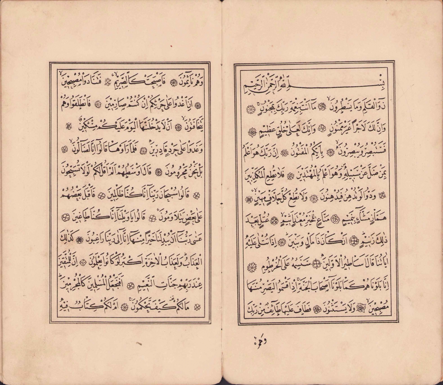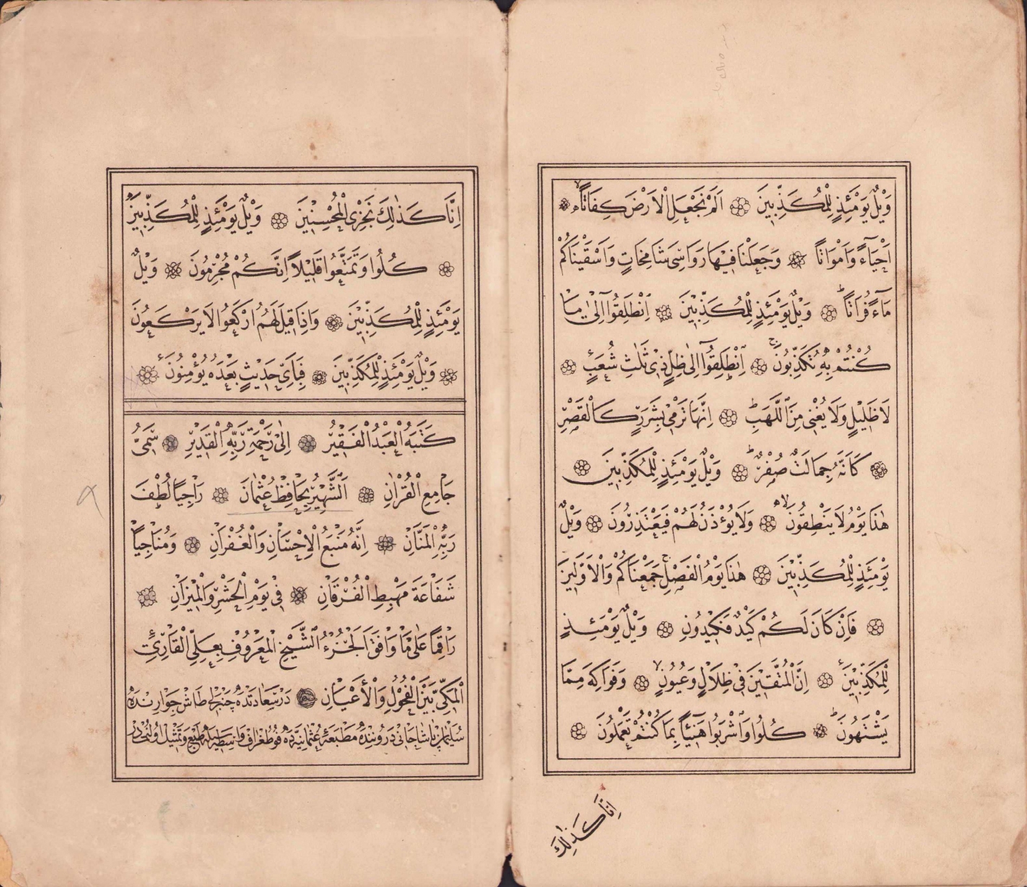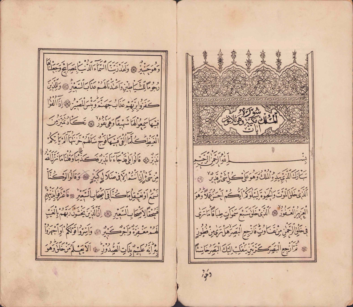 Kuran-ı Kerimden sureler( Mülk, Hakka, Kalem, Mearic, Nuh, Müzzemmil, Müddessir, Kıyamet, Mürselat), cilt yıpranmış, 32 sayfa, 13x23cm