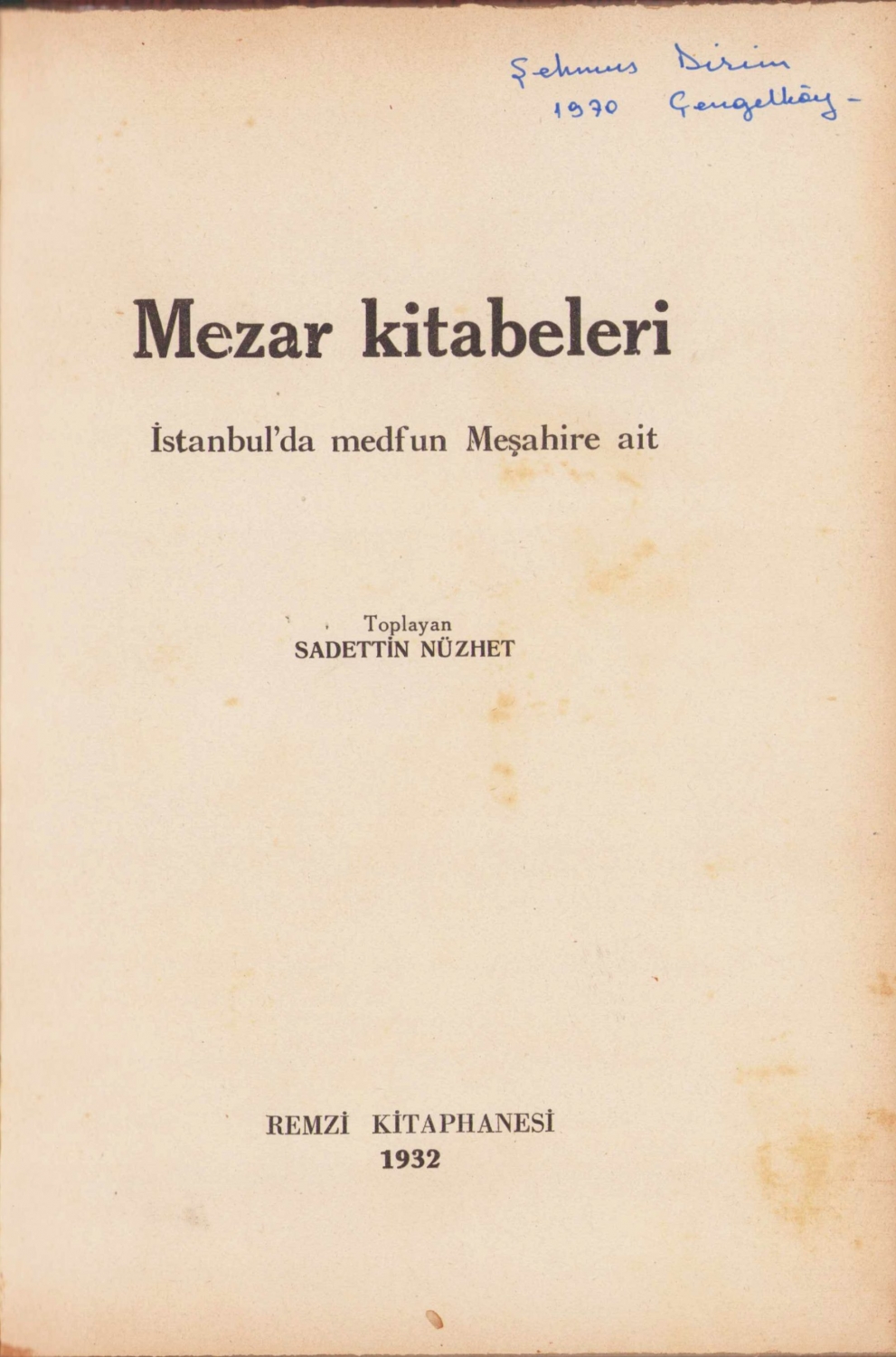Mezar Kitabeleri, Sadettin Nüzhet, İstanbul, 1932, 34 resim, 24 sayfa, 16x24cm