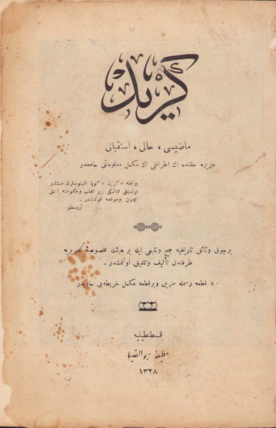 Girit - mazisi, hal, istikbali, Matbaa-i Ebuziyya, 1328, Osmanlıca, resimli, 96 sayfa, 14x20cm