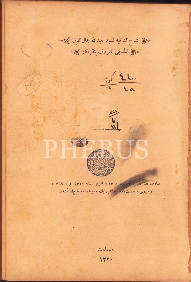 Arapça Şafiye Şerhi, Nukrekâr Seyyid Abdullah Cemaleddin, Dersaadet [İstanbul] 1320, 236 s., 17x24 cm, cildi yorgun haliyle