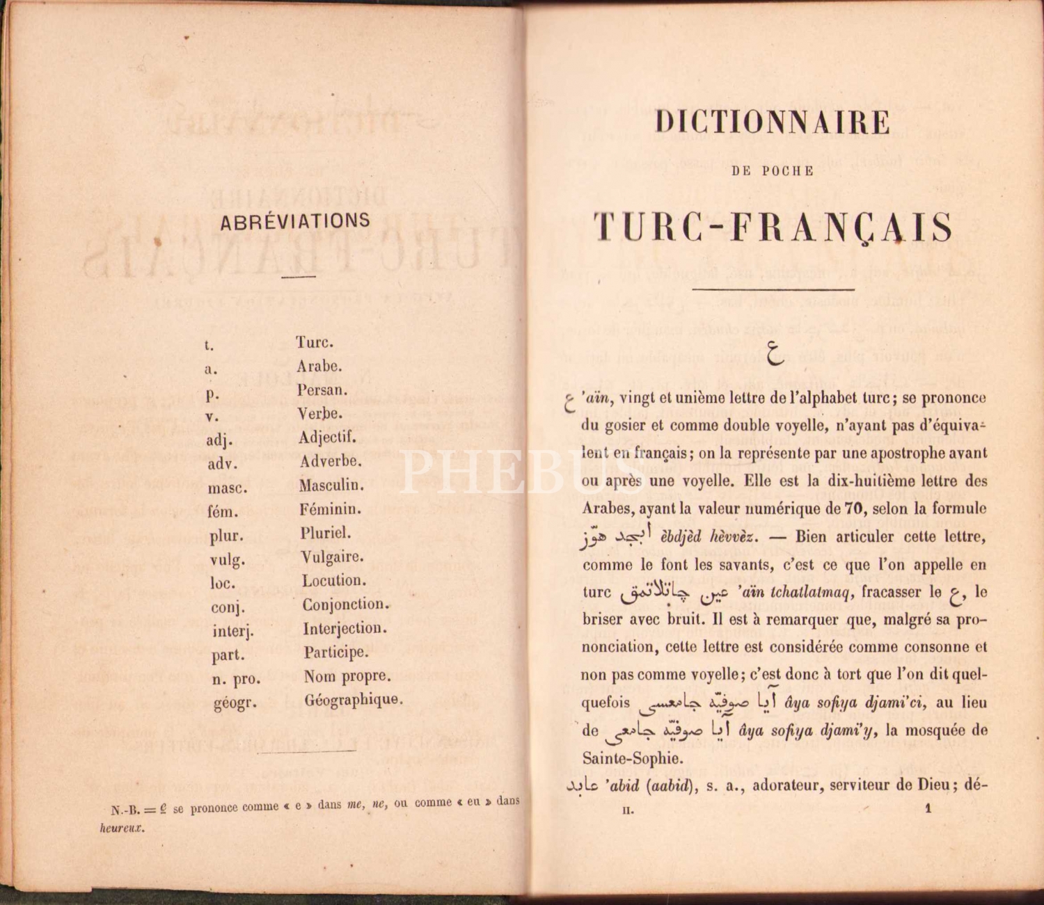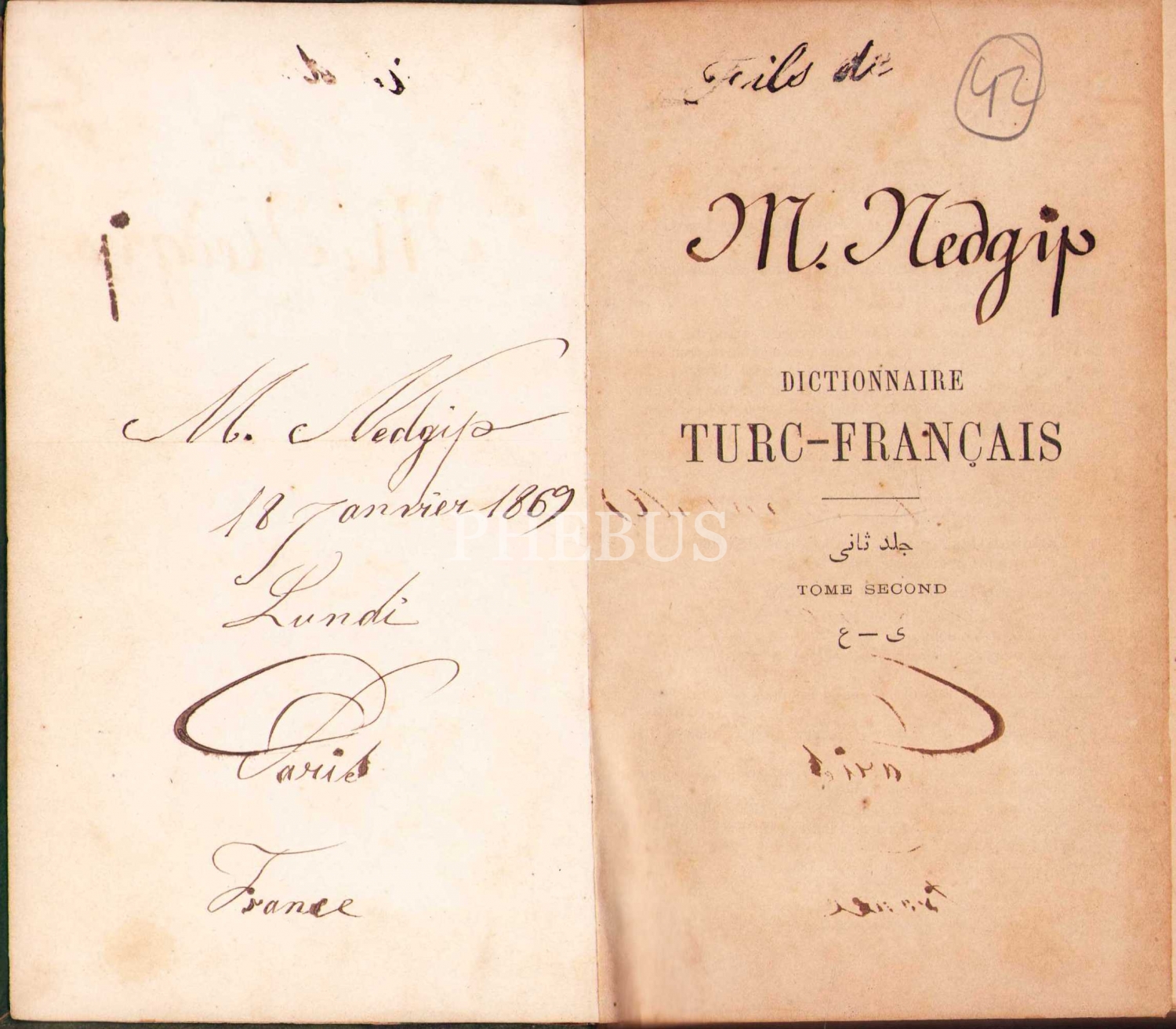 Türkî-Fransevî Lügatnâmesi [Osmanlıca-Fransızca Sözlük] - 2. Cild, N. Mallouf, Paris 1867, 708 s., 11x17 cm, cildi yer yer soyulmuş haliyle
