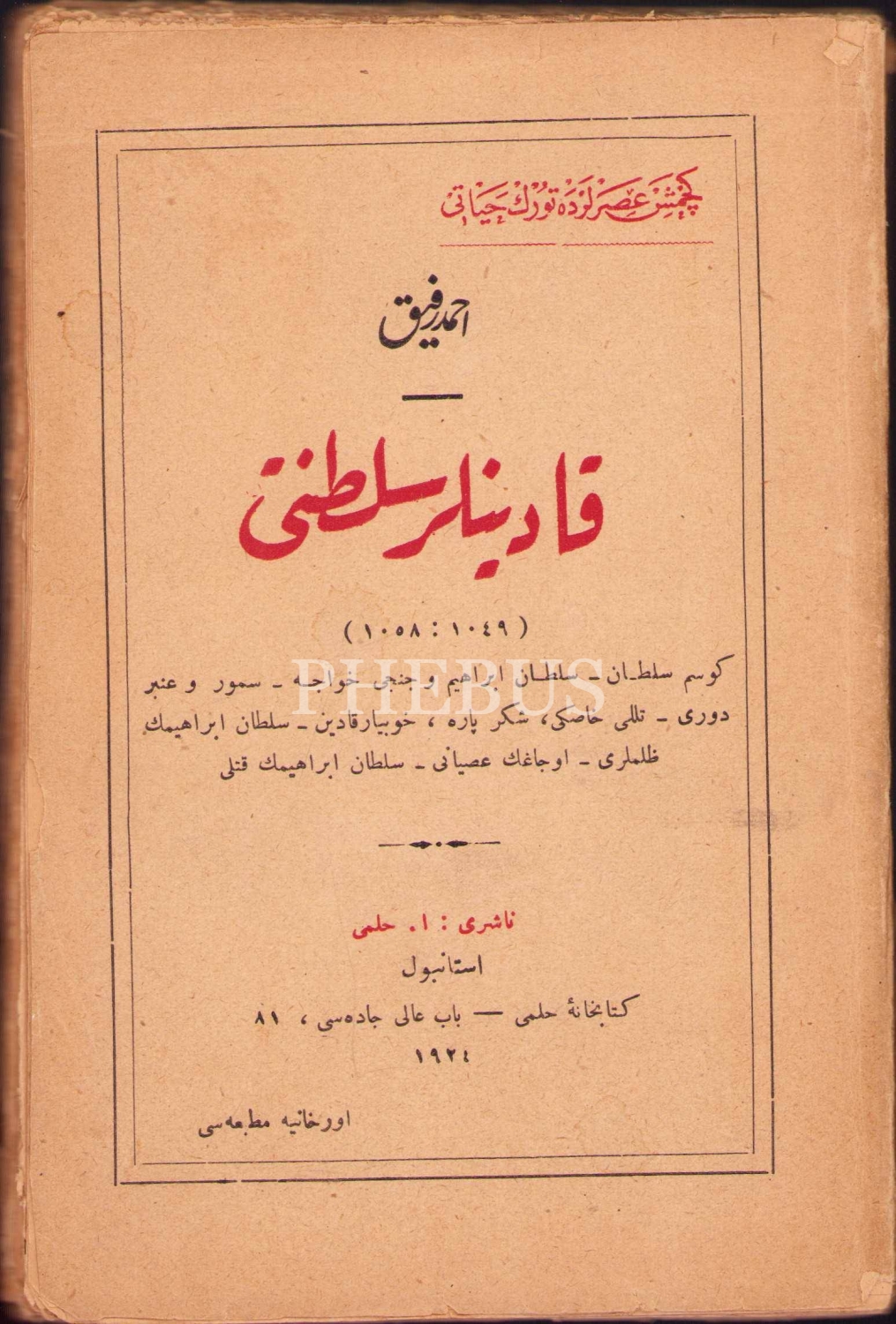 Osmanlıca Kadınlar Saltanatı, Ahmed Refik, Orhaniye Matbaası, İstanbul 1924, 180 s., 13x19 cm, sayfa kenarları ve kapak sayfası yıpranmış haliyle