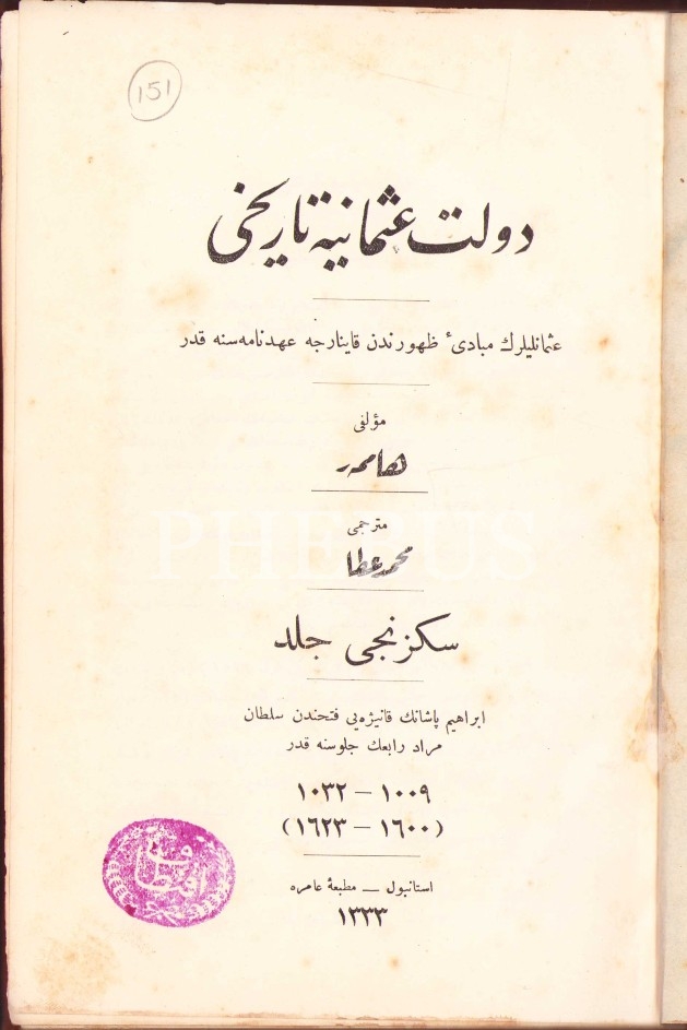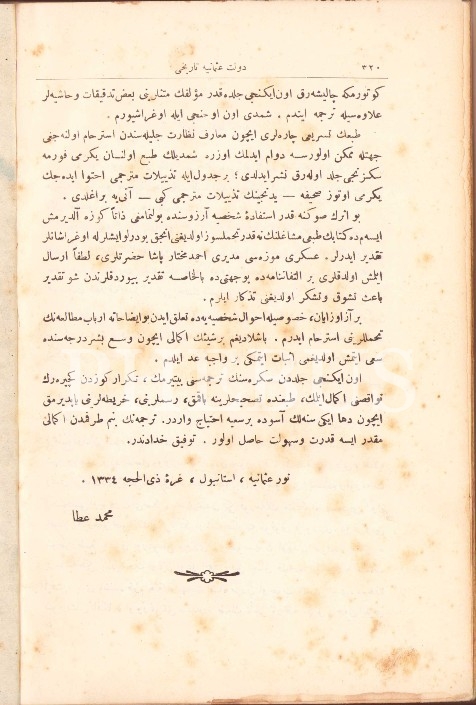 Osmanlıca Devlet-i Osmâniye Târîhi-8. Cild, Hammer, çev. Mehmed Atâ, Amire Matbaası, İstanbul 1333, 317 s., 17x24 cm, cildi yıpranmış ve sayfaları lekeli haliyle