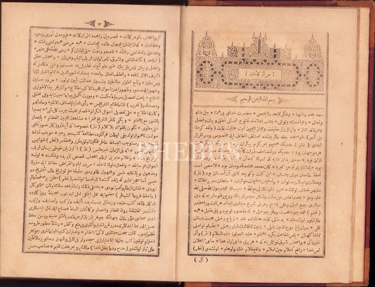Osmanlıca Mir'ât-ı Kâinât-2 Cild, Nişancızade Mehmed b. Ahmed, 706+688 s., Tatyos Dividciyan Matbaası, İstanbul 1290, 16x24 cm