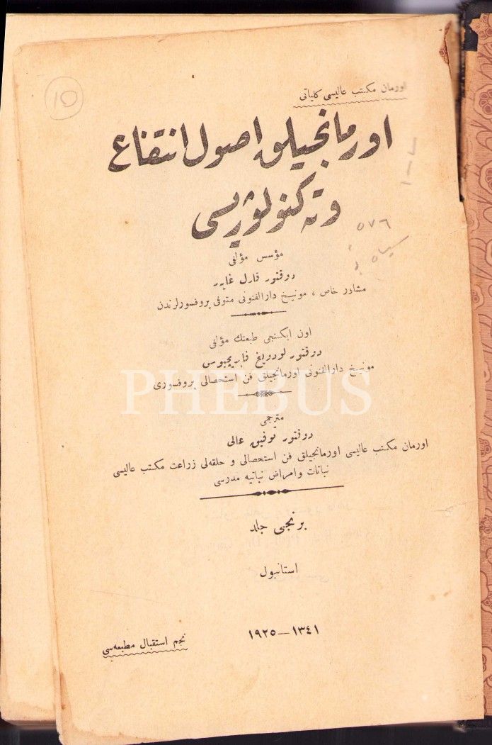 Osmanlıca Ormancılık Usûl-i İntifâ' [Faydalanma] ve Teknolojisi-1. Cild, Karl Gayer, çev. Tevfik Âli, Necm-i İstikbal Matbaası, İstanbul 1925, 1390 s., 15x23 cm, cildi ve birkaç sayfası yıpranmış haliyle