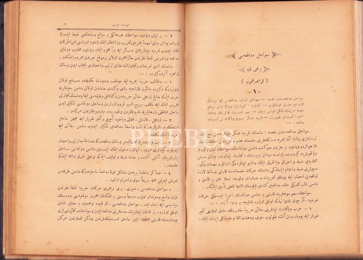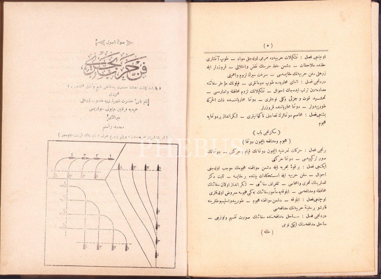Osmanlıca Son Usûl Fenn-i Harb-i Bahrî [Deniz Savaşı Sanatı], Miralay Mehmed Rasim, Bahriye Matbaası, 1312, 163 s.; Sevâhil Müdâfaası, İsmail Zühdi, Bahriye Matbaası, 1318, 142 s., 17x24 cm, yorgun haliyle