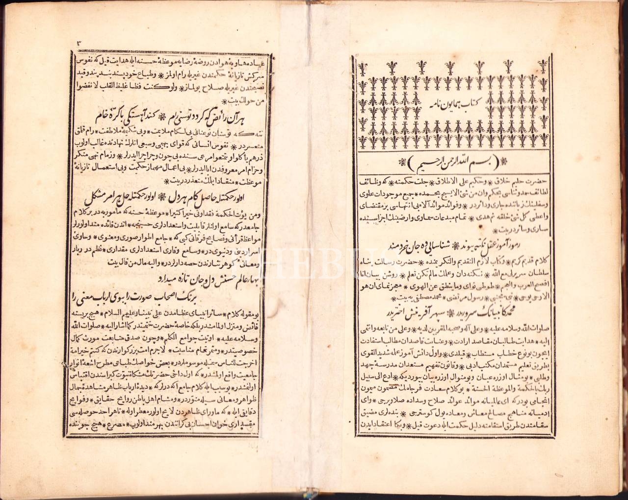 Deri cildinde Osmanlıca Hümâyunnâme, Bulak Matbaası, Mısır 1251, 555 s., kurt yenikleri mevcut haliyle