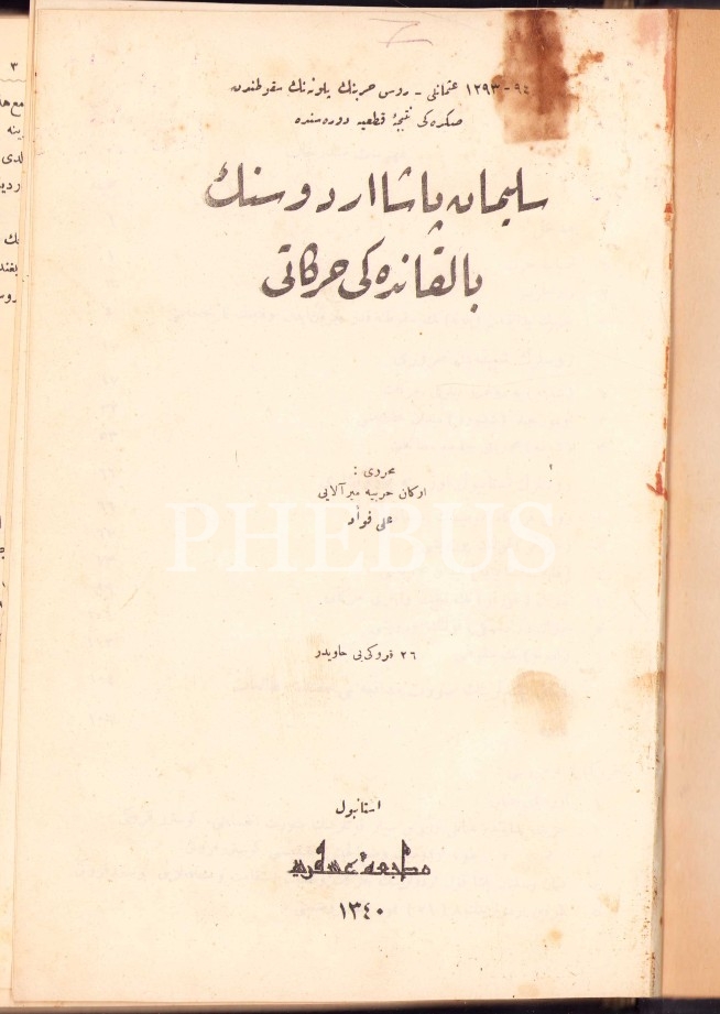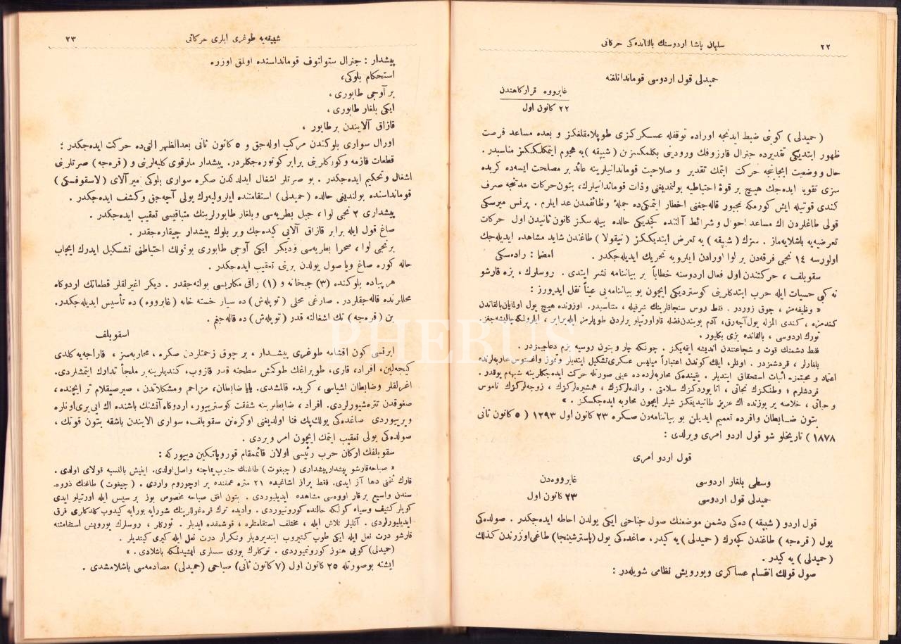 Osmanlıca Süleyman Paşa Ordusunun Balkan'daki Harekâtı, Ali Fuad, kroki ekleriyle, Askeriye Matbaası, İstanbul 1340, 107 s., 18x25 cm