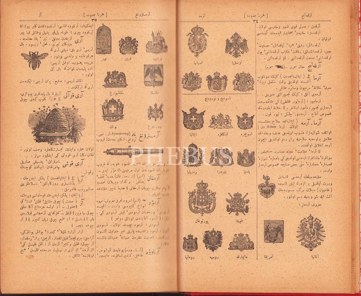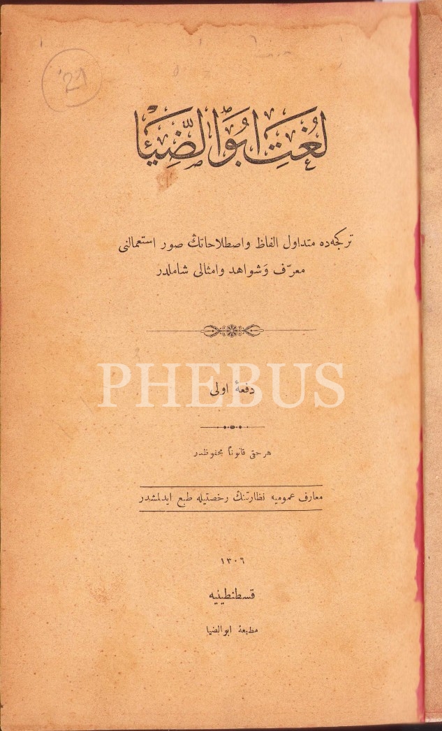 Osmanlıca Lügat-i Ebuzziya-1. Cild, Ebuzziya Matbaası, Kostantiniyye 1306, 600 s., 17x25 cm, su almış ve cildi yıpranmış haliyle