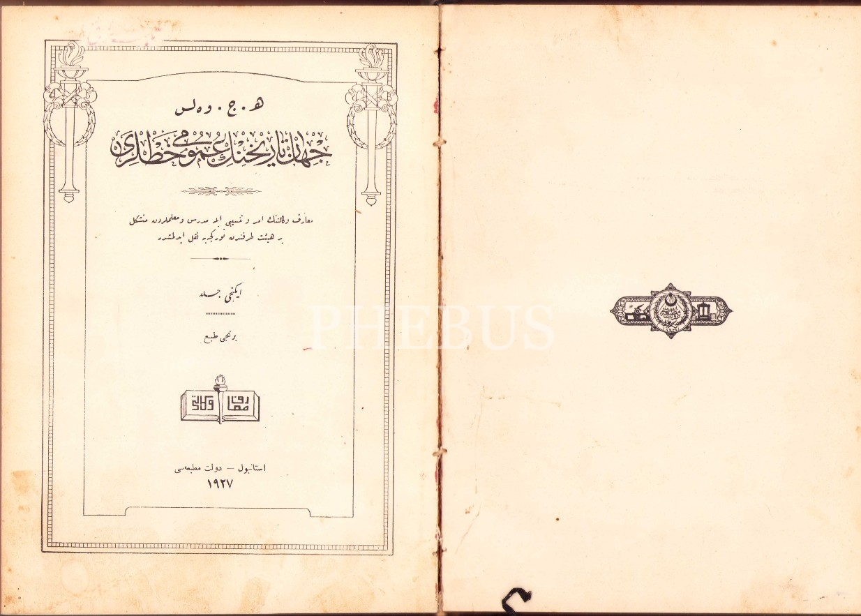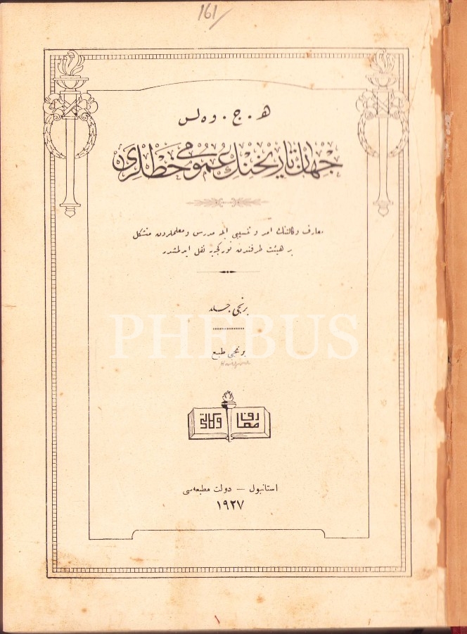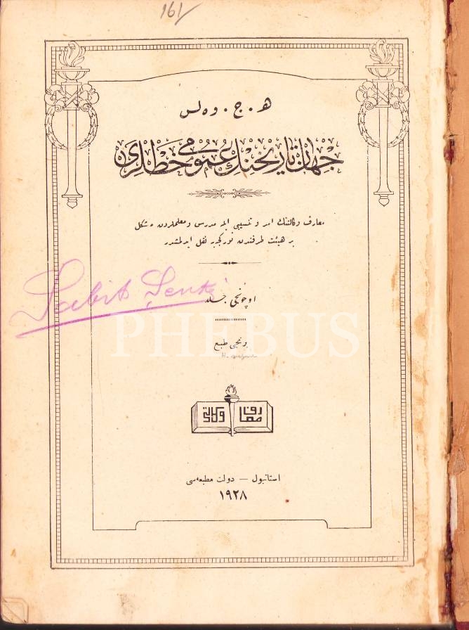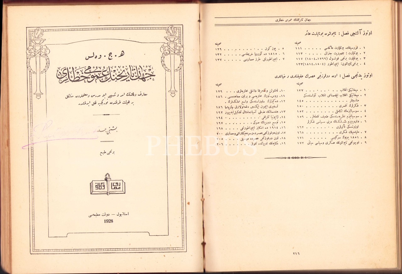 Osmanlıca Cihan Târîhinin Umûmî Hatları-5 Cild [1. baskı], H. G. Wells, Devlet Matbaası, İstanbul 1927-8, 214+236+252+216+133 s., 20x27 cm, ciltleri yıpranmış haliyle