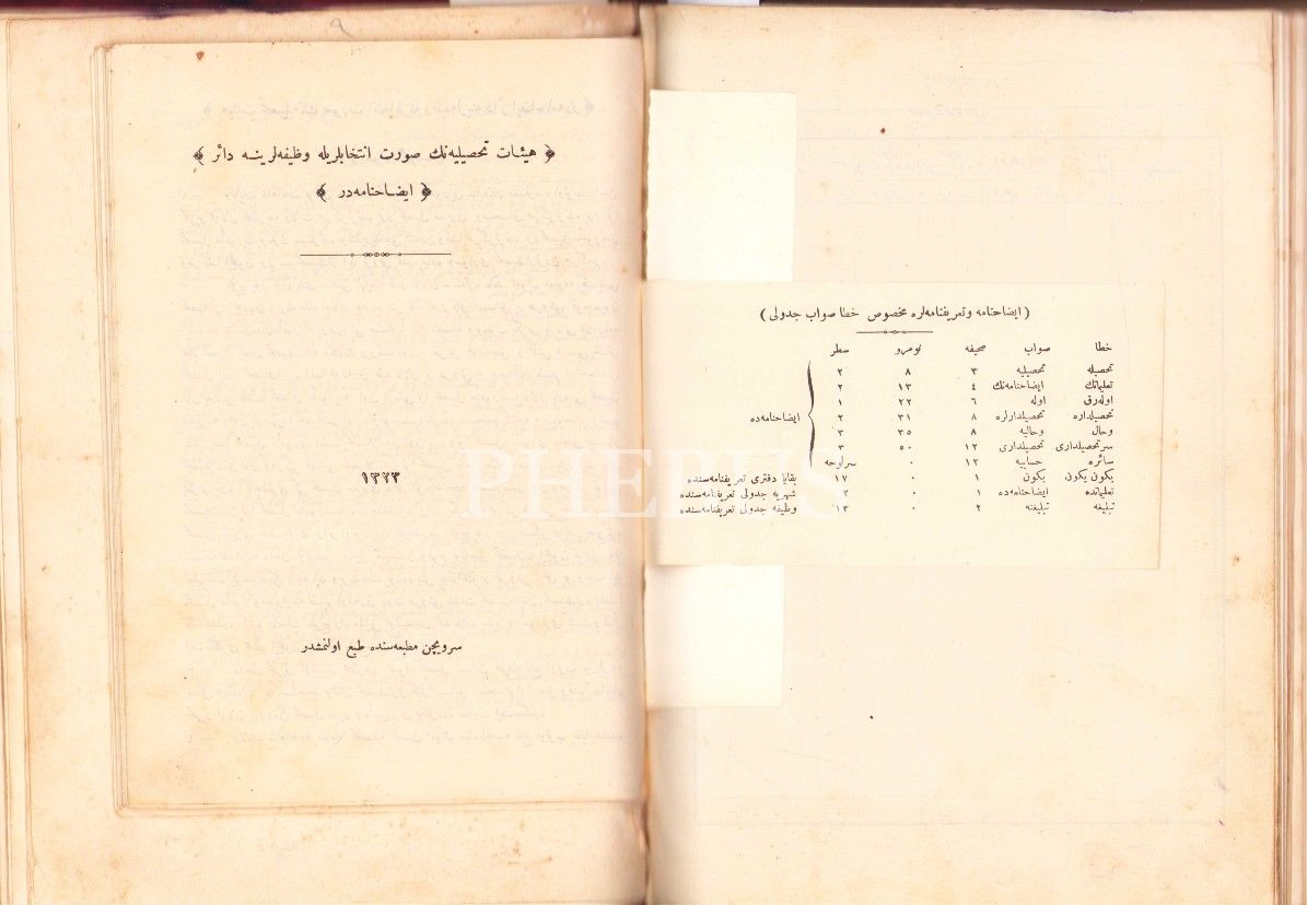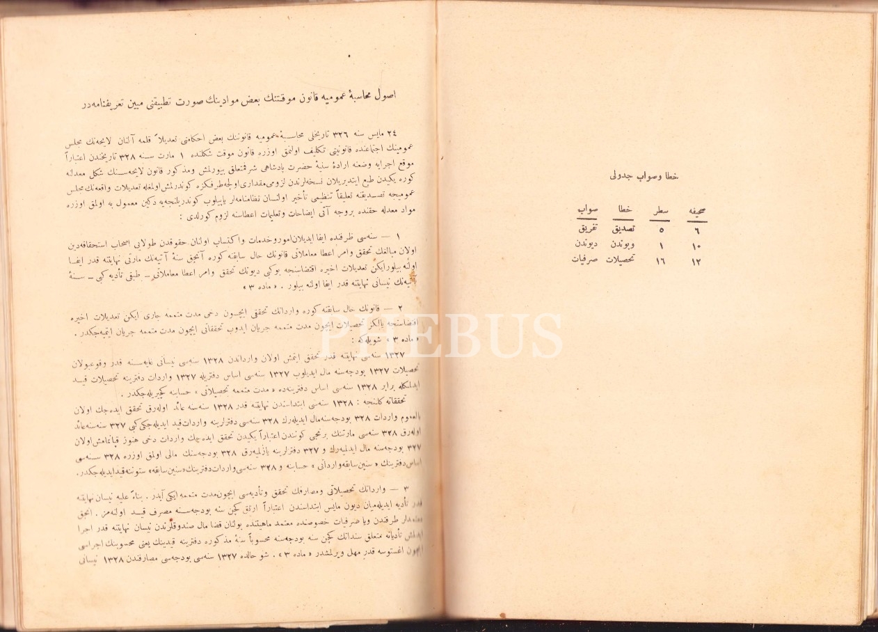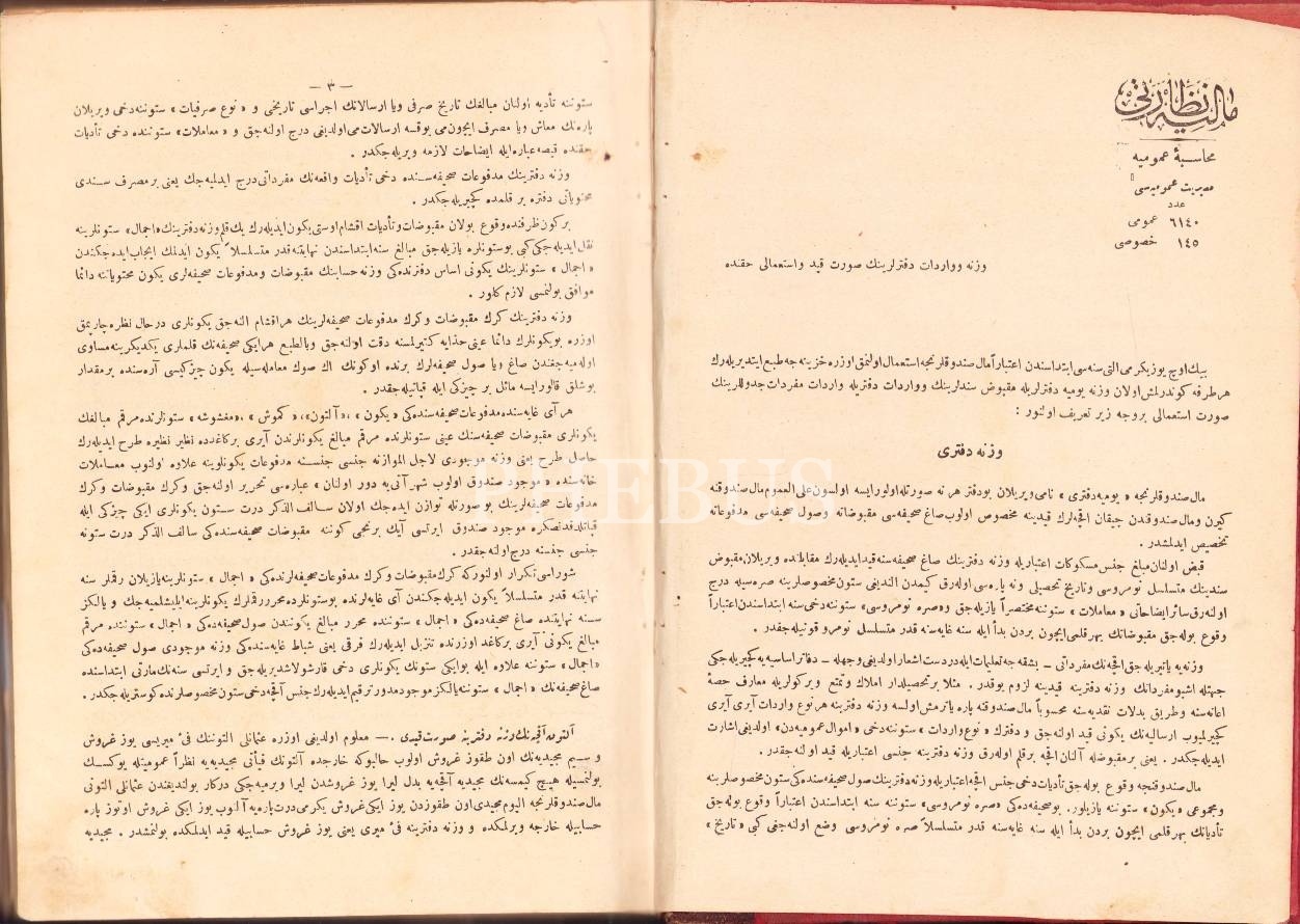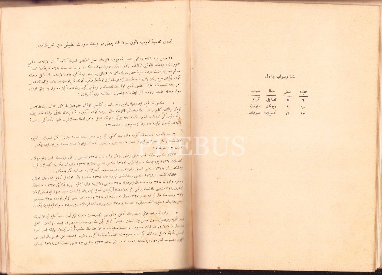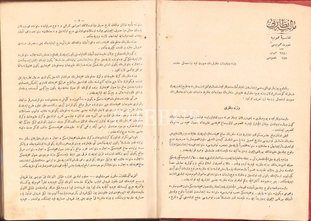 Örnek olarak; Resm-i Damga Kanunu, Tahsil-i Emval Kanunu, Taşra Mal Sandıklarınca Tutulacak Esas Defteri Tarifnamesi, Vezne Defteri Numunesi vd.