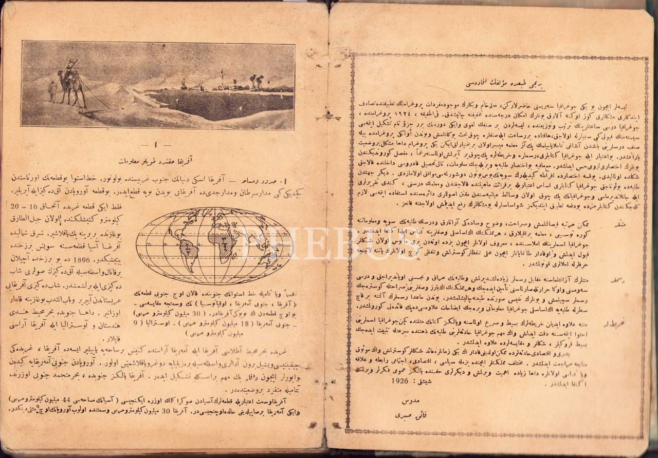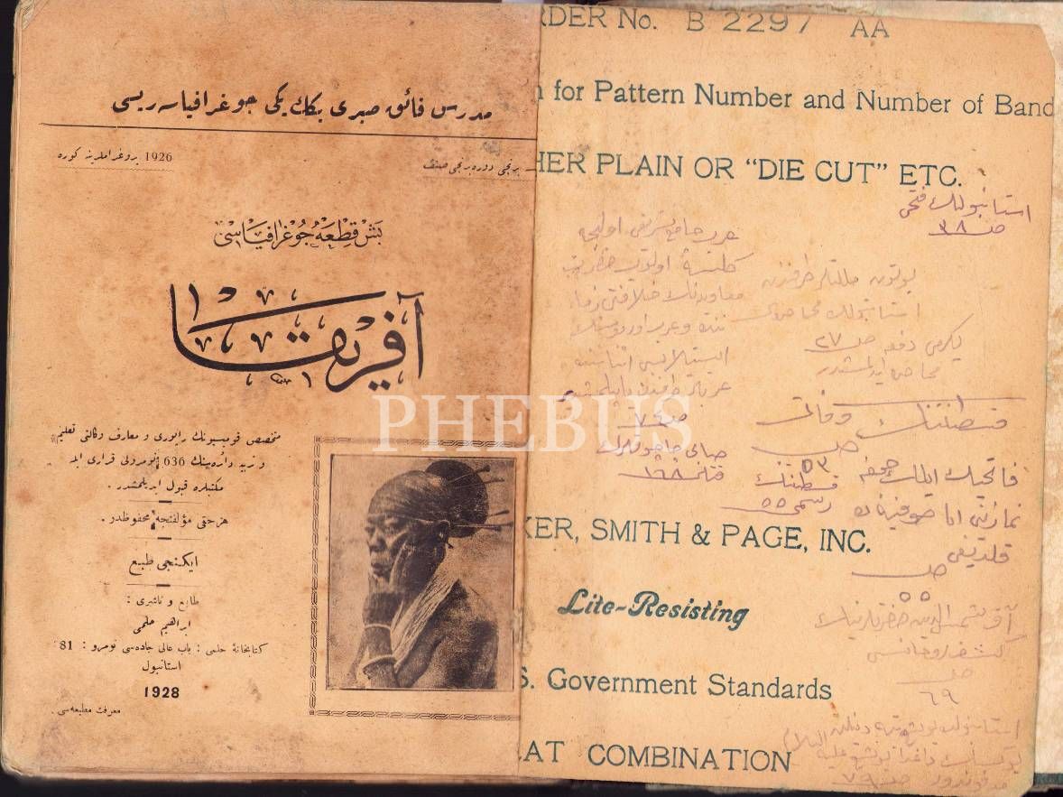 Osmanlıca 3 eser tek ciltte: Beş Kıta Coğrafyası: Afrika, Müderris Faik Sabri Bey'in Yeni Coğrafya Serisi, Marifet Matbaası, İstanbul 1928, 108 s.;