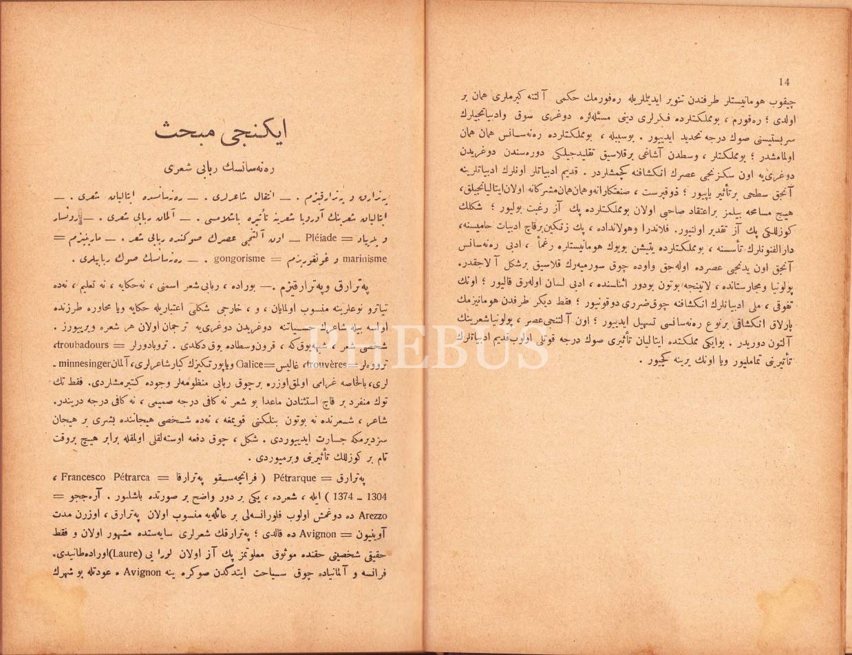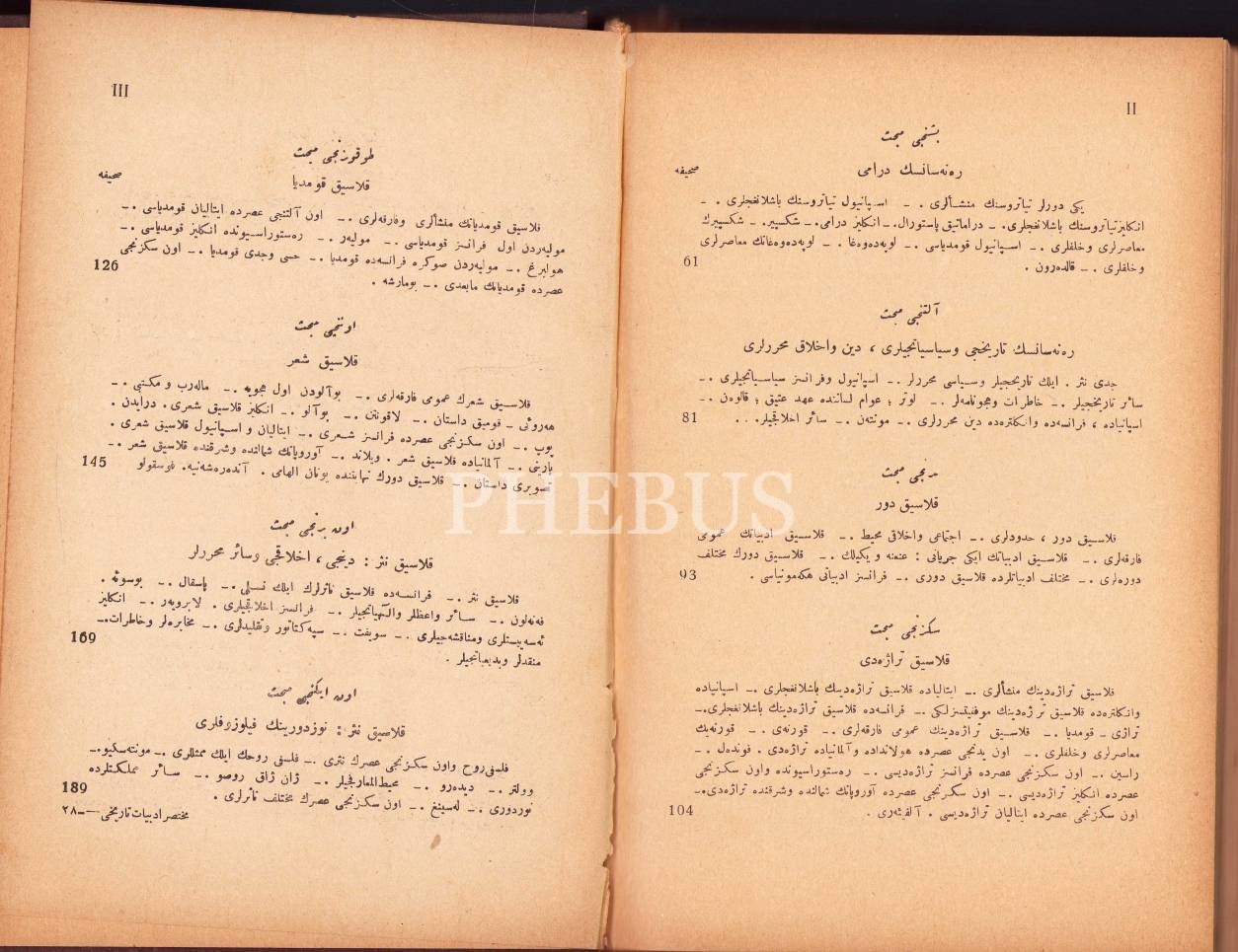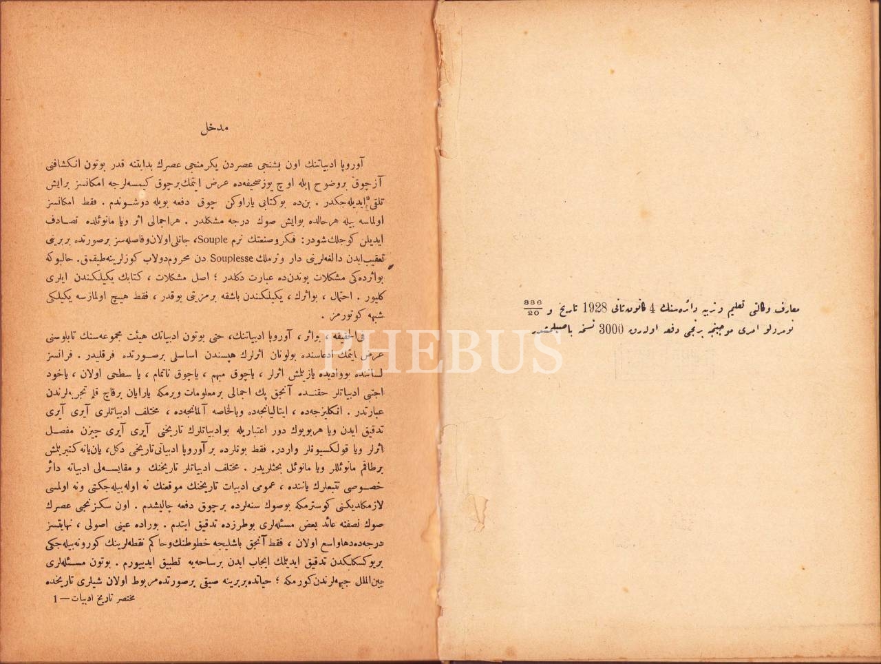 Osmanlıca Avrupa Edebiyyâtı Muhtasar Târîhi (Rönesans'tan Beri), Van Tieghem, çev. Yusuf Şerif, Devlet Matbaası, İstanbul 1928, 401 s., 17x24 cm, künye sayfasından yırtıklar mevcut