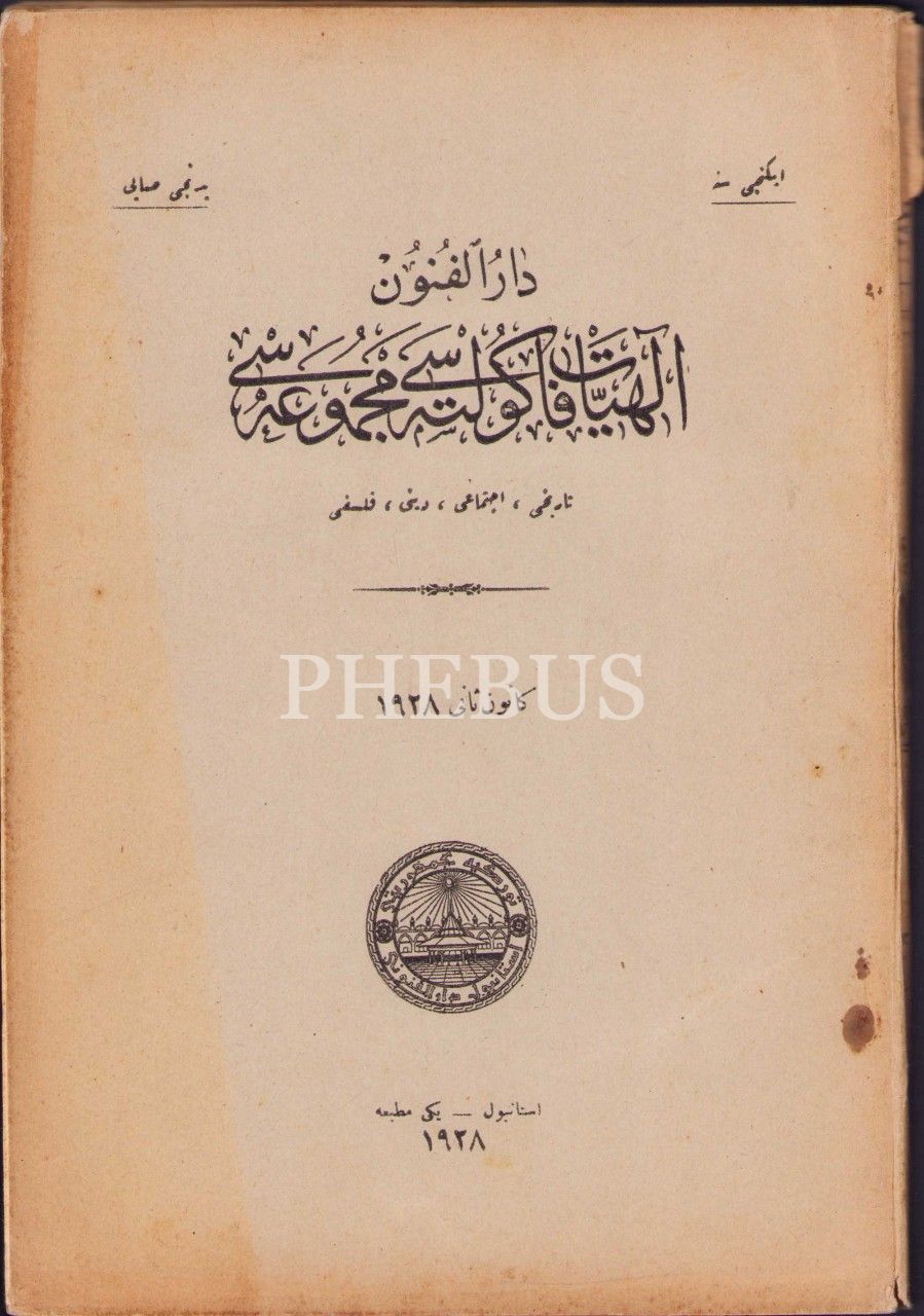Osmanlıca Dârülfünûn İlâhiyyât Fakültesi Mecmûası (Târîhî, İctimâî, Dînî, Felsefî)-2. Sene 1. Sayı (Kanunusani 1928) Yeni Matbaa, İstanbul 1928, 176 s., 16x24 cm, kapağı yıpranmış haliyle