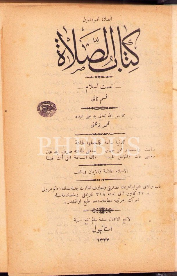 Osmanlıca Nimet-i İslâm: Kitâbu's-Salât [Namaz Kitabı], Mehmed Zihni, Şirket-i Mürettibiye Matbaası, İstanbul 1322, 628 s., 14x20 cm, cildi hafif yıpranmış haliyle