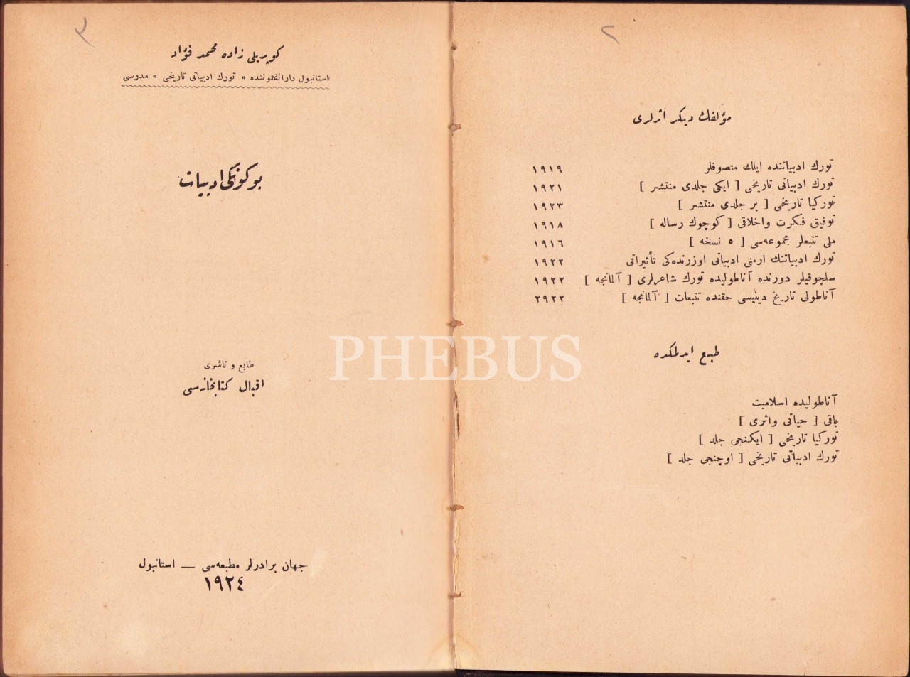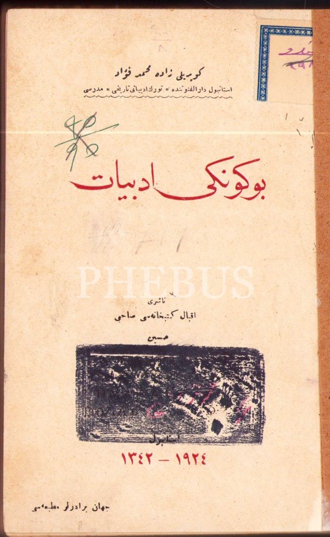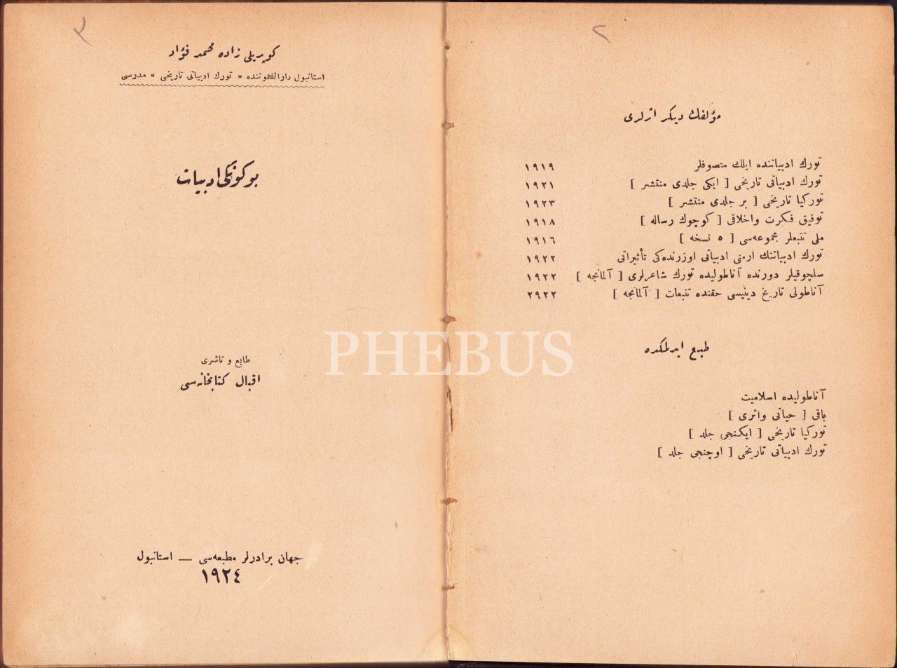 Osmanlıca Bugünkü Edebiyyât, Köprülüzade Mehmed Fuad, Cihan Biraderler Matbaası, İstanbul 1924, 329 s., 13x19 cm, cildi yorgun haliyle