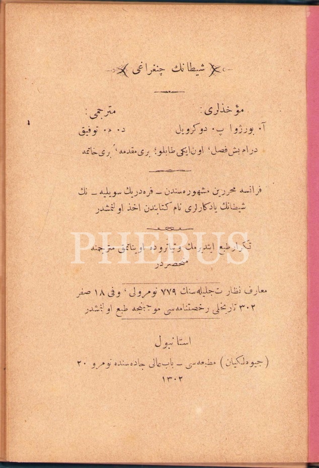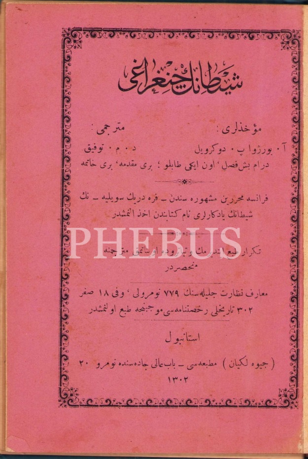 Osmanlıca Şeytanın Çıngırağı, çev. M. Tevfik, Civelekyan Matbaası, İstanbul 1302, 143 s., 13x19 cm, cildi yorgun haliyle