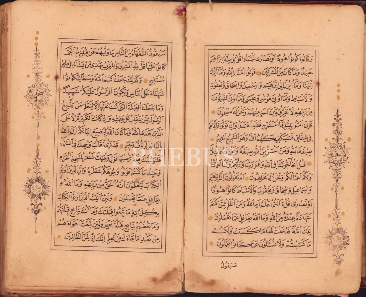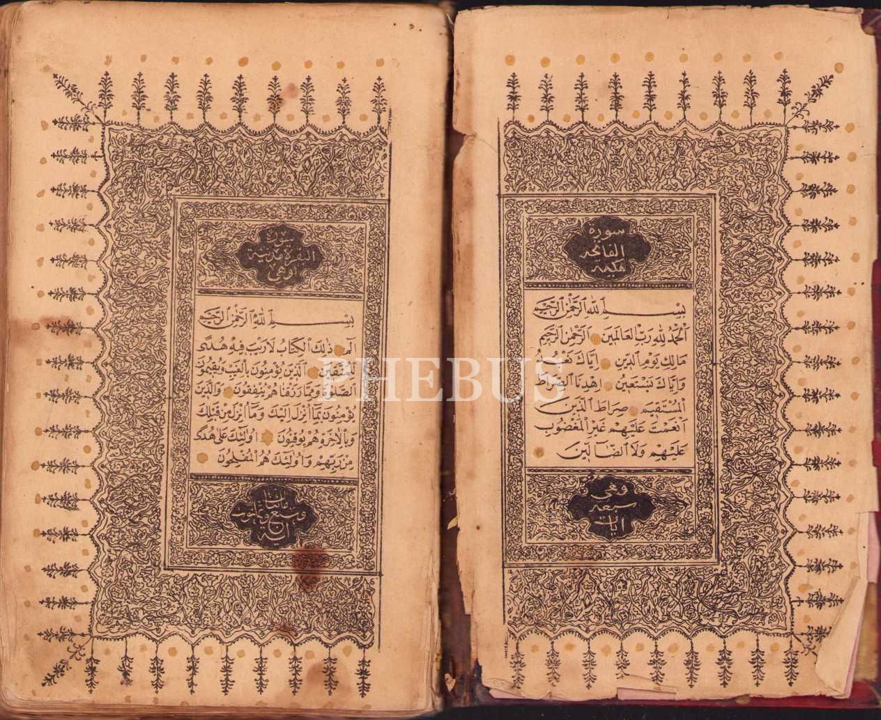 Deri cildinde matbu Kur'ân-ı Kerîm, 11x18 cm, bazı sayfaları ayrık ve yıpranmış haliyle