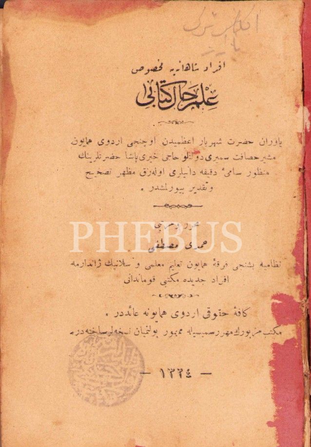 Osmanlı tuğralı ve ay yıldızlı cildinde Osmanlıca Efrâd-ı Şâhâneye Mahsûs İlmihâl Kitâbı, Hamdi Mustafa, 1324, 181 s., 11x15 cm, sayfaları su almış ve cildi yıpranmış haliyle