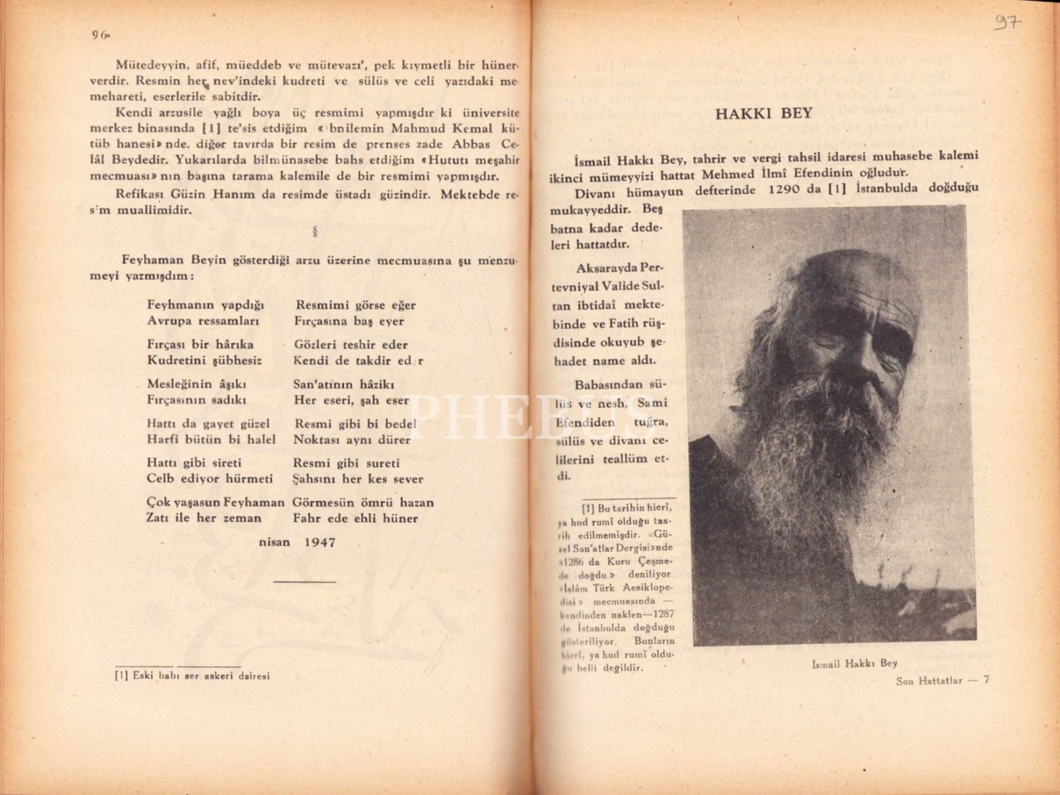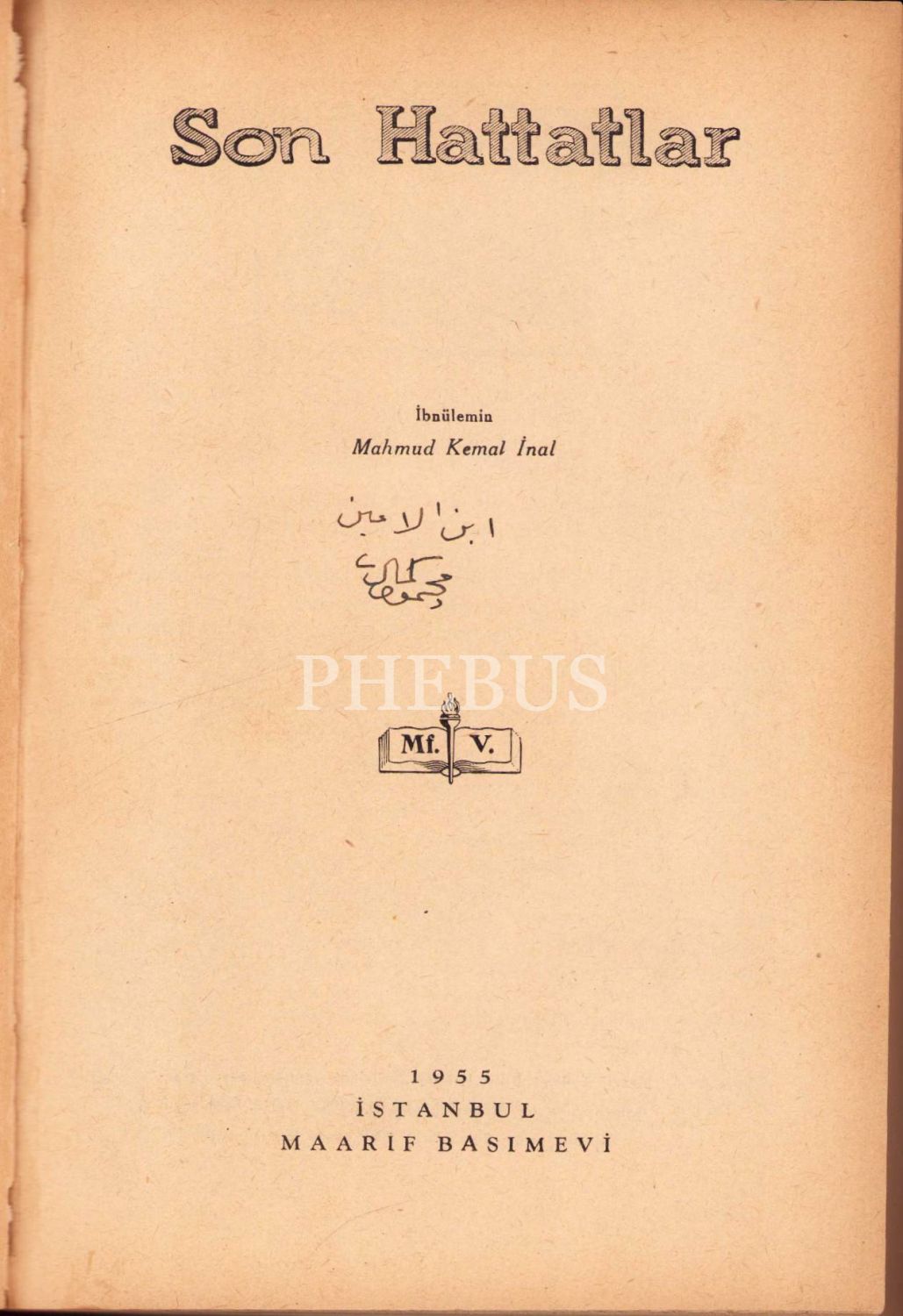 Son dönem âlimlerinden ve biyografi yazarlarından İbnülemin Mahmud Kemal İnal'ın kaynaklardan ulaştığı yahut bizzat tanıştığı hattatların ayrıntılı yaşam öykülerini ve eserlerinden numuneleri bir araya getirdiği eseri "Son Hattatlar" eserinin yazar tarafından Osmanlıca imzalı nüshasıdır. İmza Osmanlıca "İbnülemin Mahmud Kemal" şeklindedir.
