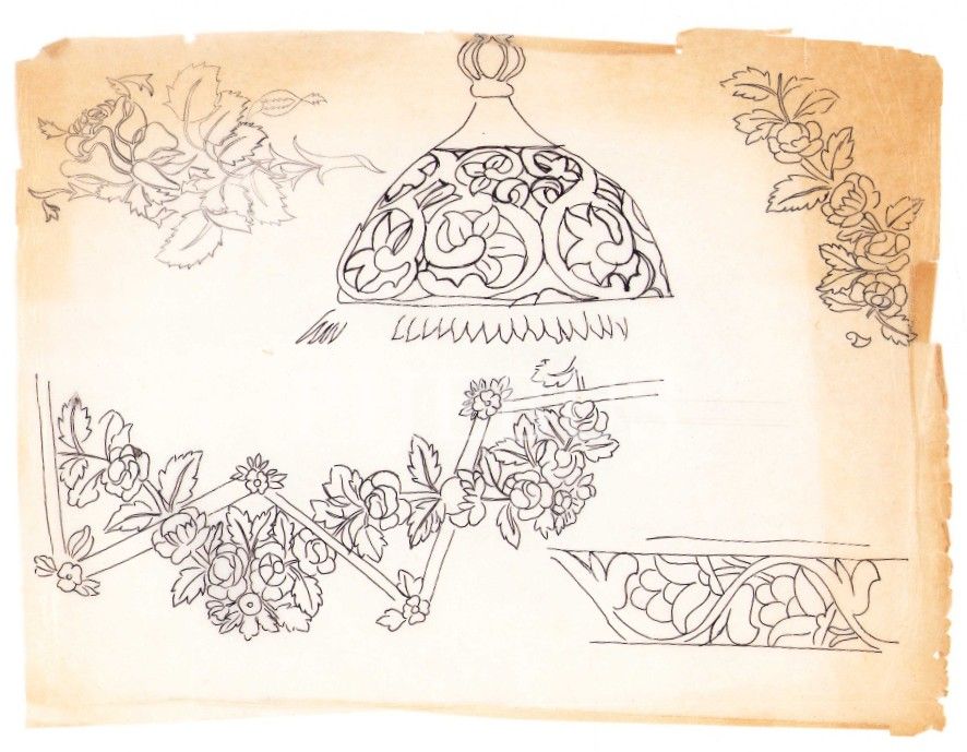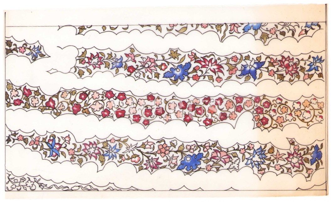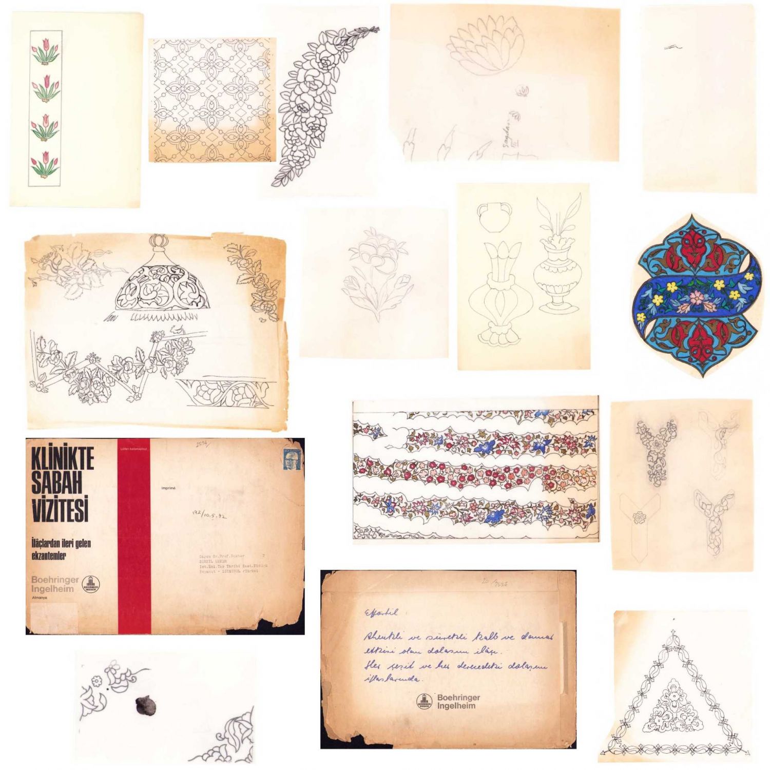 Süheyl Ünver'e Ait 15 Parça Tezhip ve Desen Çalışmaları, İstanbul Üniversitesi Tıp Tarihi Enstitü Müdürüyken Süheyl Ünver'e Gönderilmiş İlaç Reklamlı Dosya İçerisinde, 1972 tarihi mevcut, muhtelif ebatlarda