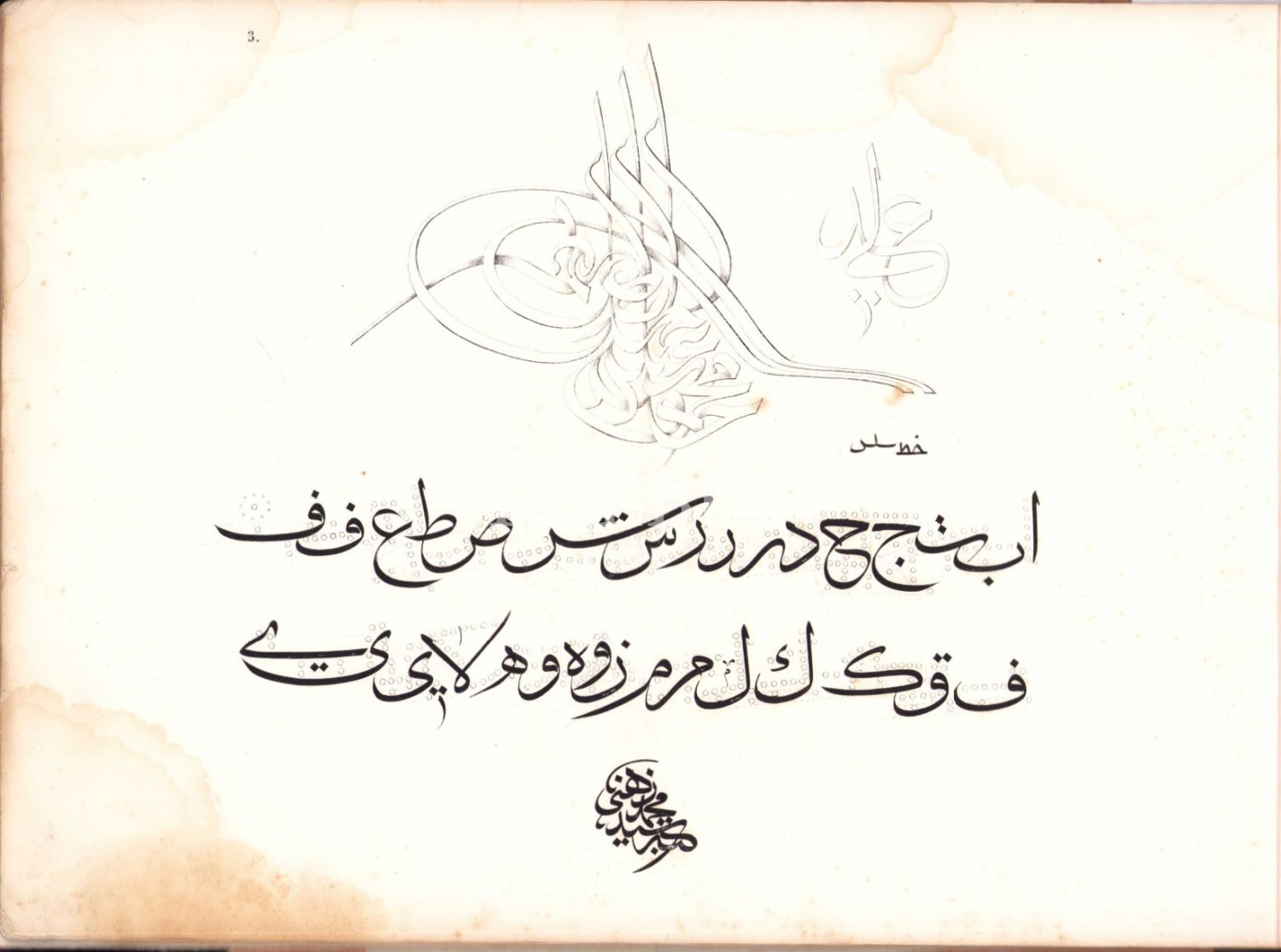 Taş baskı eserde, sülüs, nesih, talik, divani, siyakat, rık‘a gibi her bir yazı çeşidinin hususiyetlerini gösteren kısa metinler yazılıdır. Metinlerin başında hangi hatla kaleme alındıkları belirtilmiştir. Çeşitli tuğra örneklerine de yer verilen eserin hüsn-i hat hakkında eğitim alan şehzadelerin derslerinde kullandıkları bir yardımcı kaynak olduğu anlaşılmaktadır. Hat sanatında kullanılan alet ve edevatı da çizimlerle gösterilmiştir.